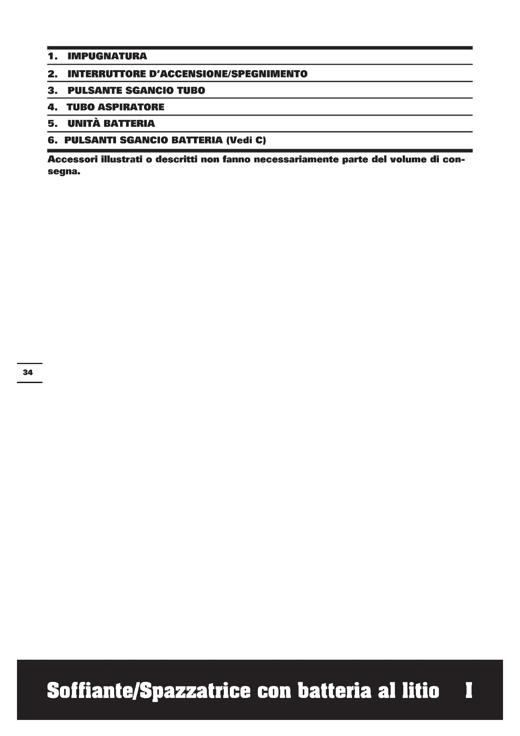 Accessori illustrati o descritti non fanno necessariamente parte del volume di con- segna.Soffiante/Spazzatrice con batteria al litio
