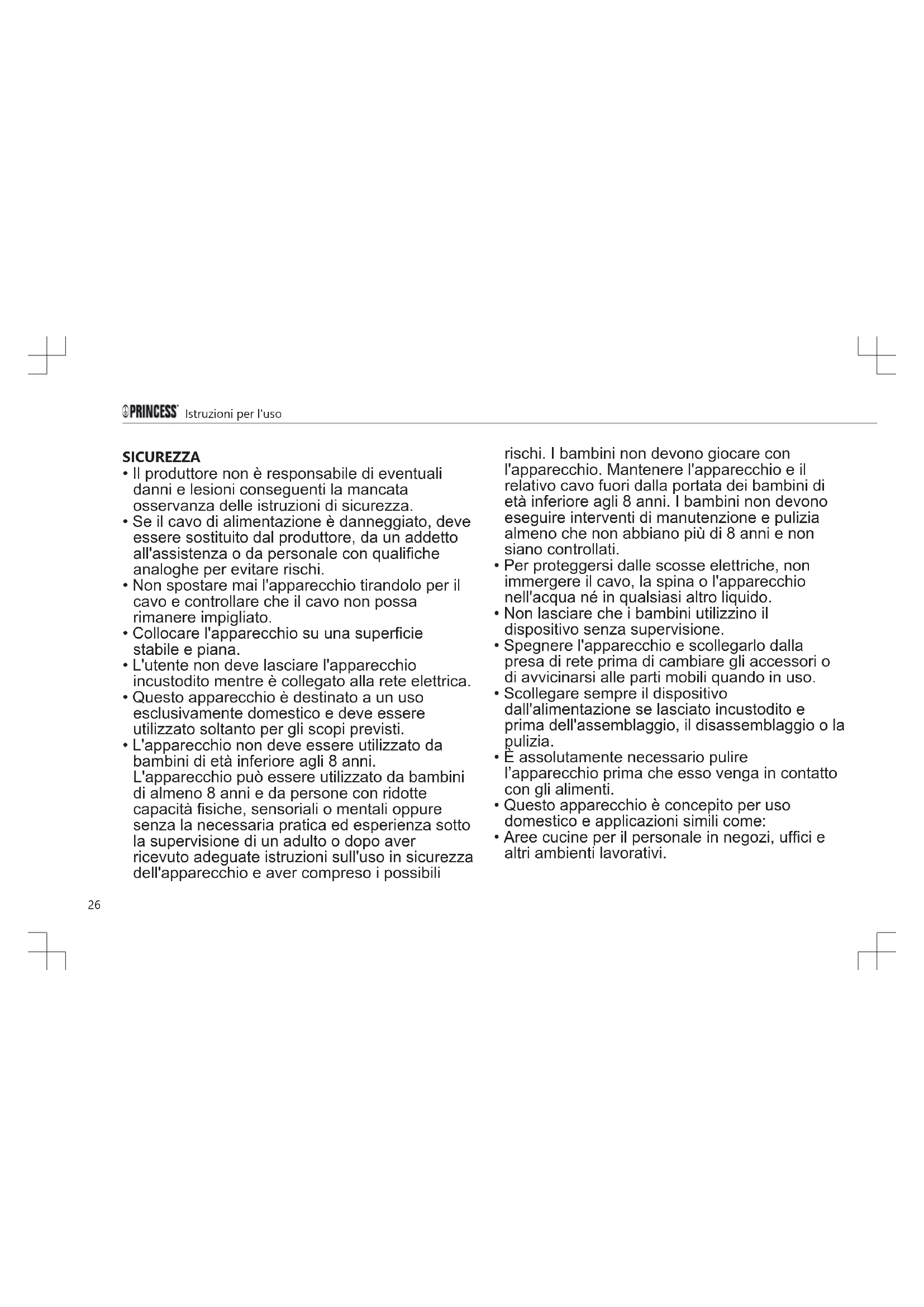- Questo apparecchio è destinato a un uso esclusivamente domestico e deve essere utilizzato soltanto per gli scopi previsti.