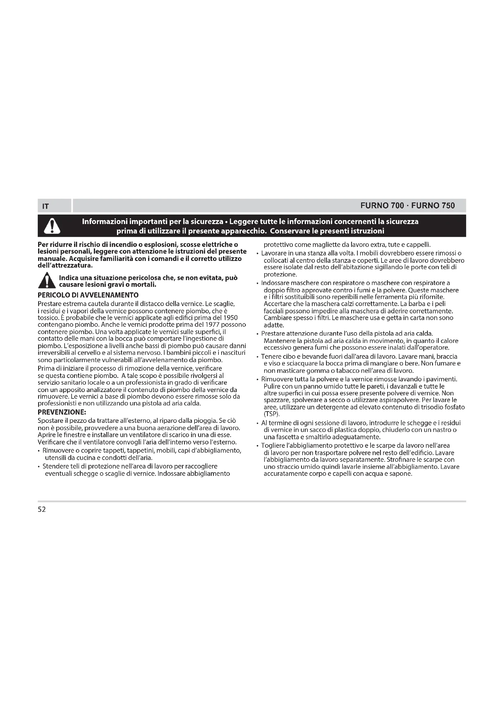 Gli apparecchi e i residui di vernice divertano molto caldi. Per evitare uszioni, indossare quanti da lavoro e protezioni per gli occhi durante l'uso.