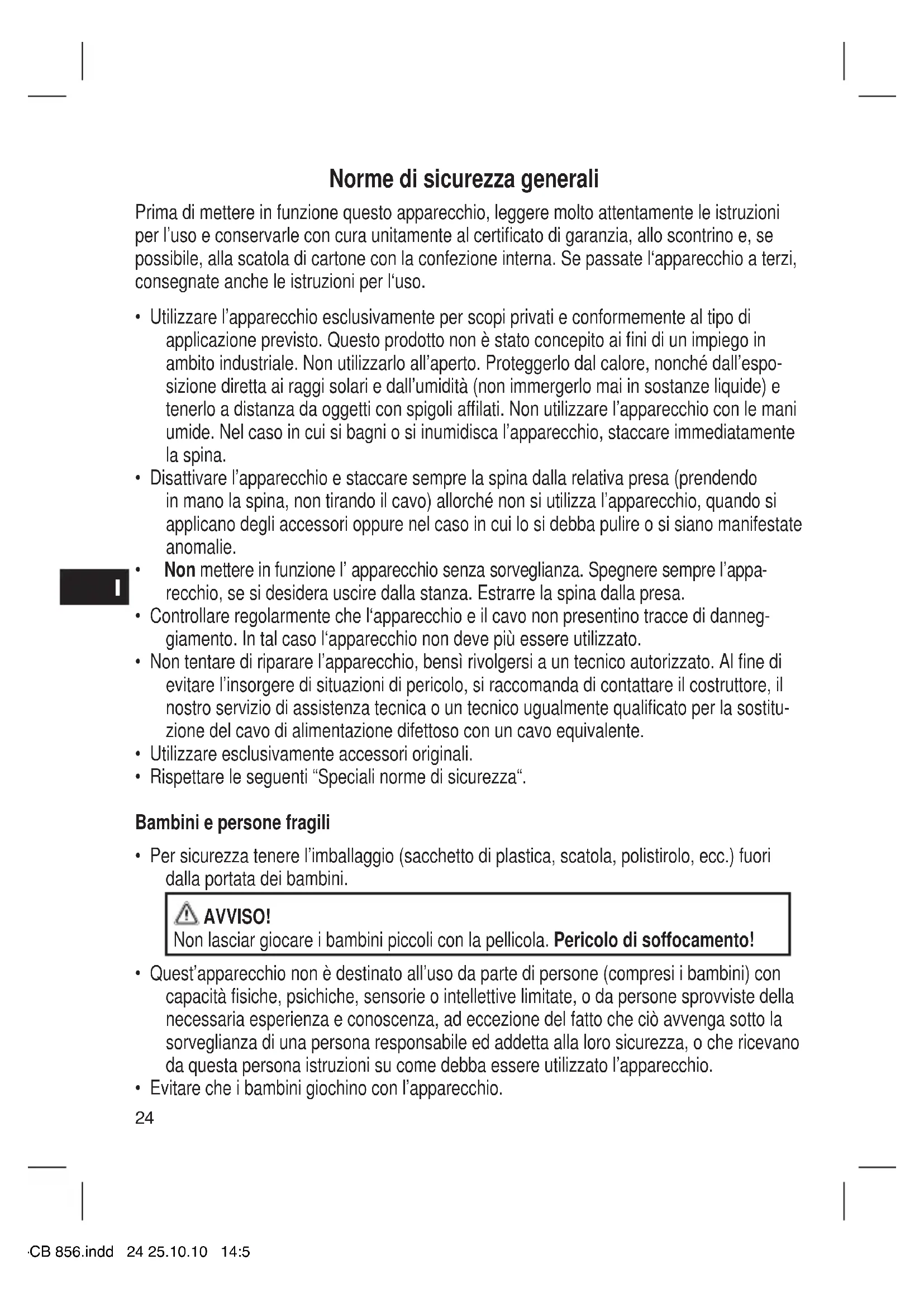 - Evitare che i bambini giochino con l’apparecchio. 05-CB 856.indd 24 25.10.10 14:52I