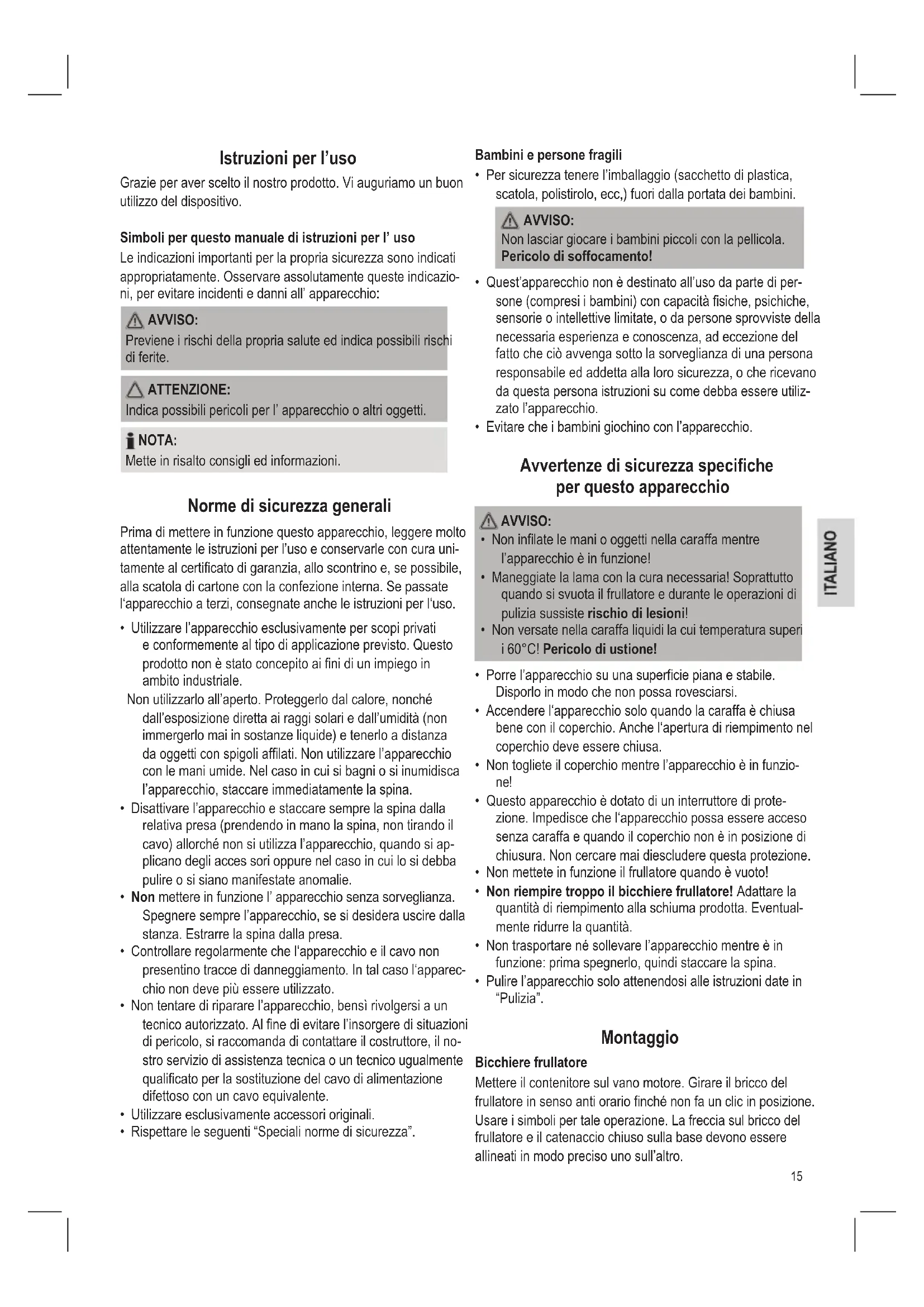 - Non versare alimenti bollenti nel bicchiere frullatore.
