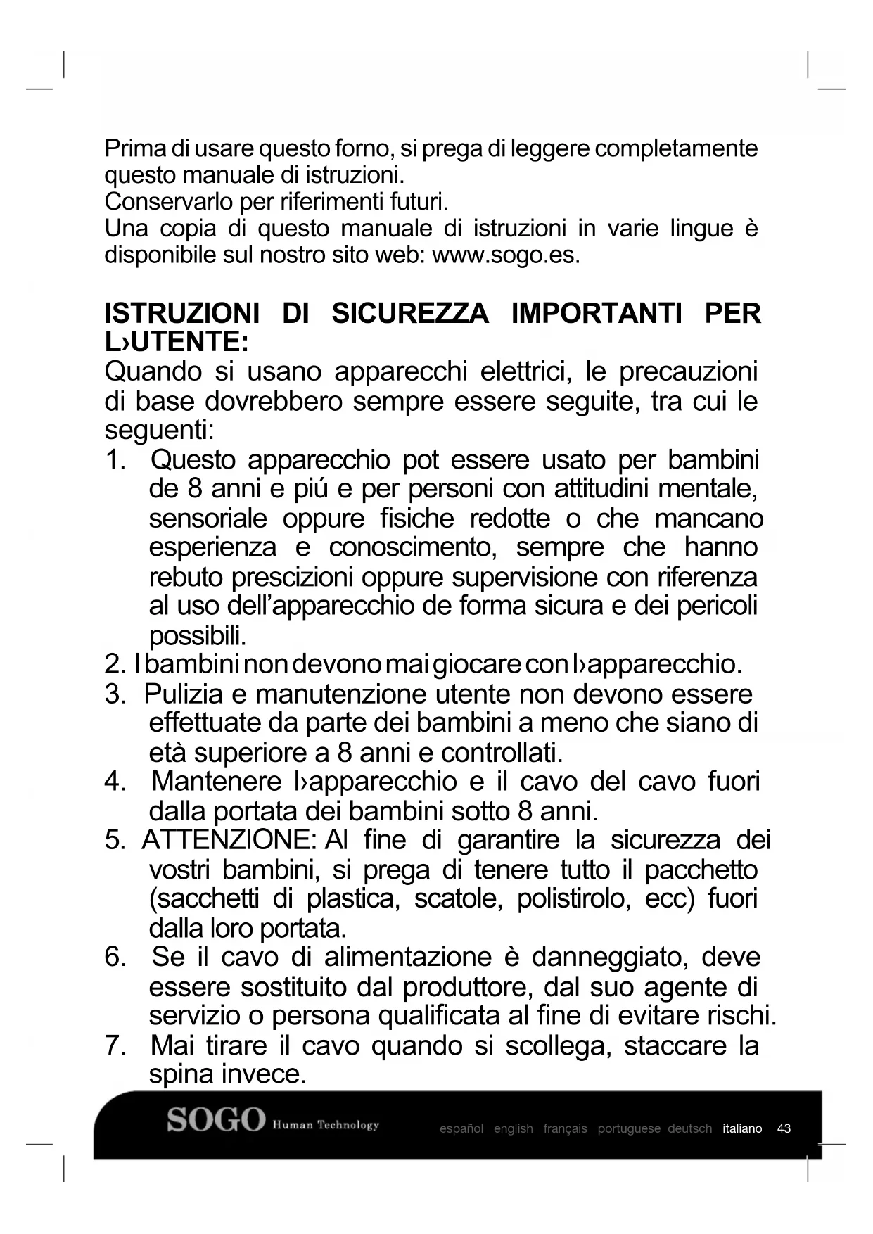 Scarica le istruzioni per il tuo Forno in formato PDF gratuitamente! Trova il tuo manuale HORSS10505 - Sogo e riprendi in mano il tuo dispositivo elettronico. In questa pagina sono pubblicati tutti i documenti necessari per l'utilizzo del tuo dispositivo. HORSS10505 del marchio Sogo.