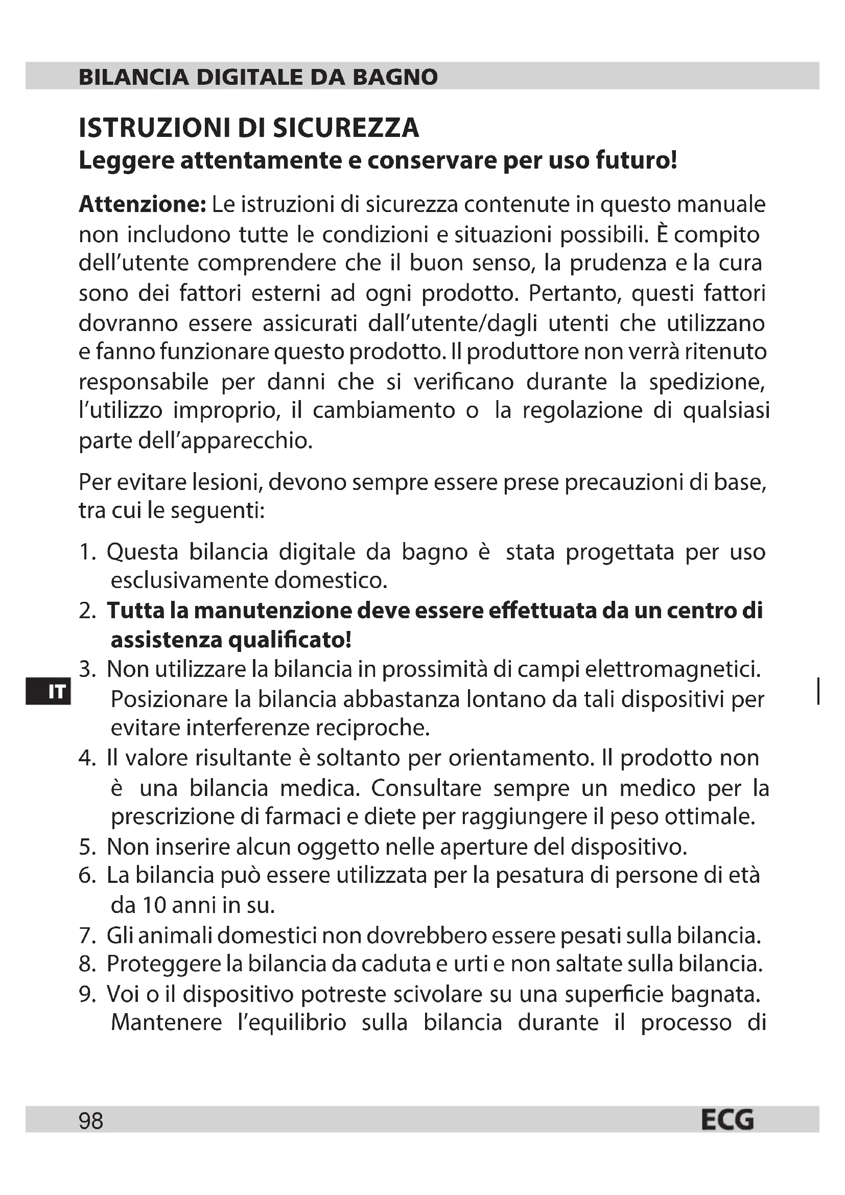 - Questa bilancia digitale da bagno è stata progettata per uso esclusivamente domestico.