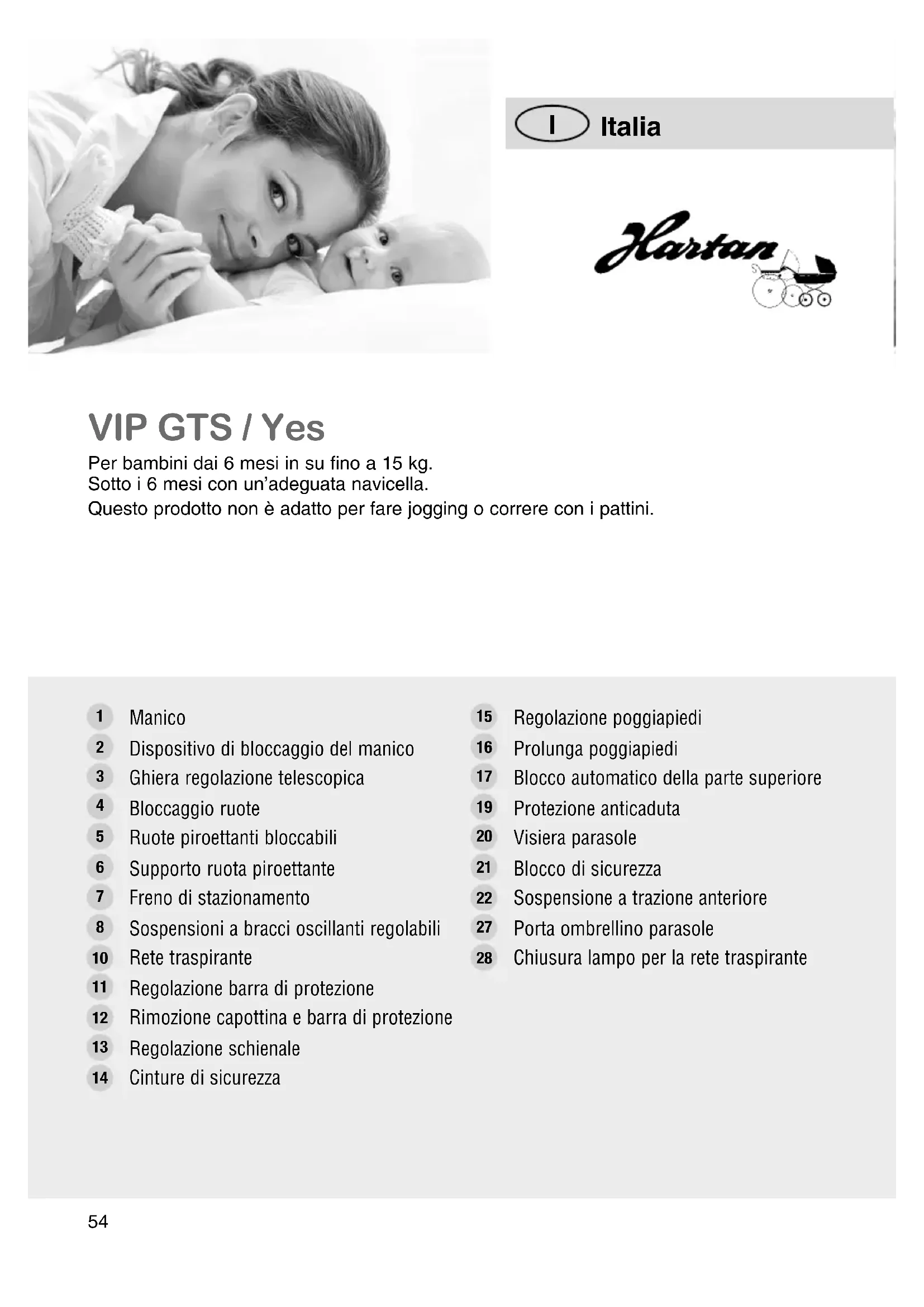 VIP GTS / Yes Per bambini dai 6 mesi in su fino a 15 kg. Sotto i 6 mesi con un’adeguata navicella. Questo prodotto non è adatto per fare jogging o correre con i pattini.