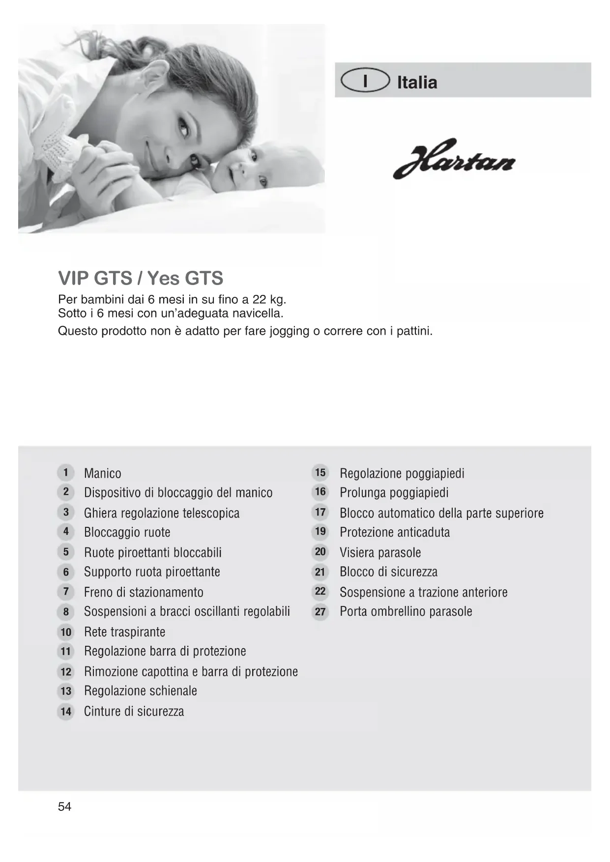 Scarica le istruzioni per il tuo Passeggino in formato PDF gratuitamente! Trova il tuo manuale VIP GTS - HARTAN e riprendi in mano il tuo dispositivo elettronico. In questa pagina sono pubblicati tutti i documenti necessari per l'utilizzo del tuo dispositivo. VIP GTS del marchio HARTAN.