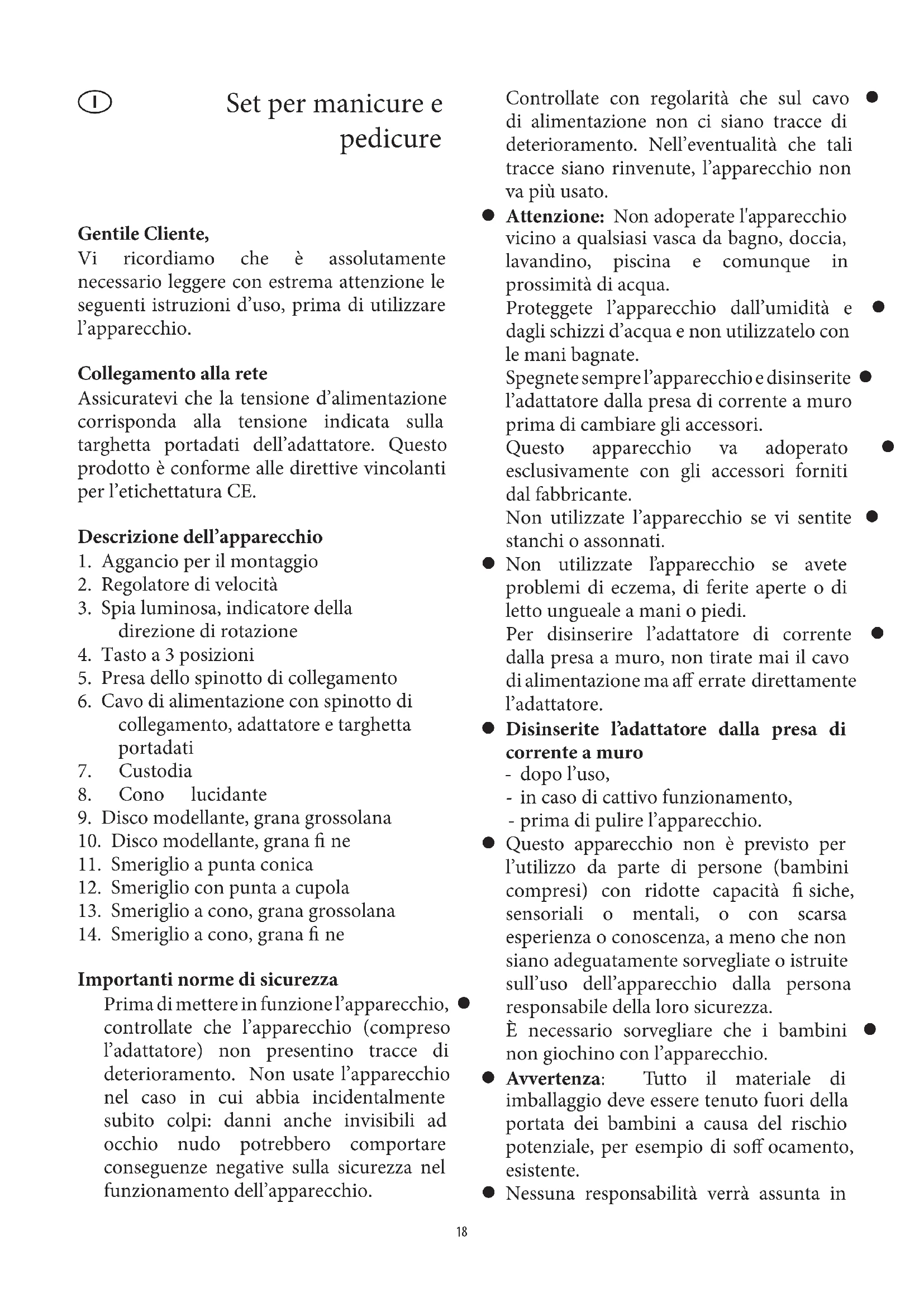 - Non utilizzate l'apparecchio se avete problemi di eczema, di ferite aperte o di letto ungueale a mani o piedi.