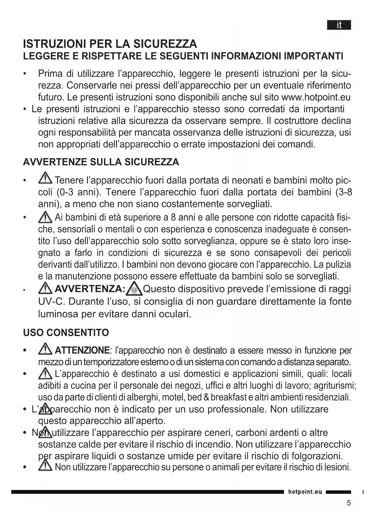 - Prima di utilizzare l’apparecchio, leggere le presenti istruzioni per la sicu- rezza. Conservarle nei pressi dell’apparecchio per un eventuale riferimento futuro. Le presenti istruzioni sono disponibili anche sul sito www.hotpoint.eu