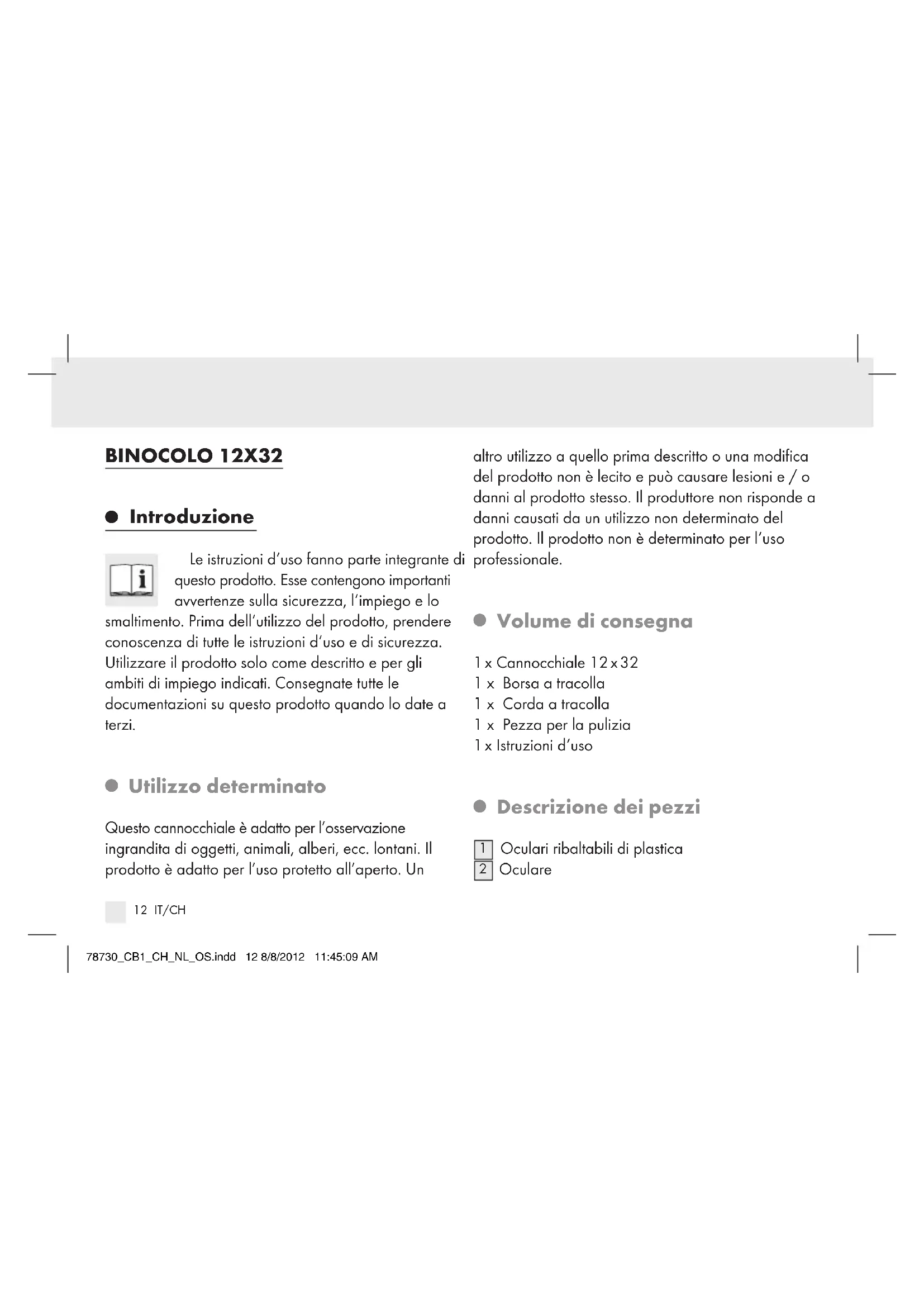 Scarica le istruzioni per il tuo Binocoli in formato PDF gratuitamente! Trova il tuo manuale IAN 78730 - AURIOL e riprendi in mano il tuo dispositivo elettronico. In questa pagina sono pubblicati tutti i documenti necessari per l'utilizzo del tuo dispositivo. IAN 78730 del marchio AURIOL.