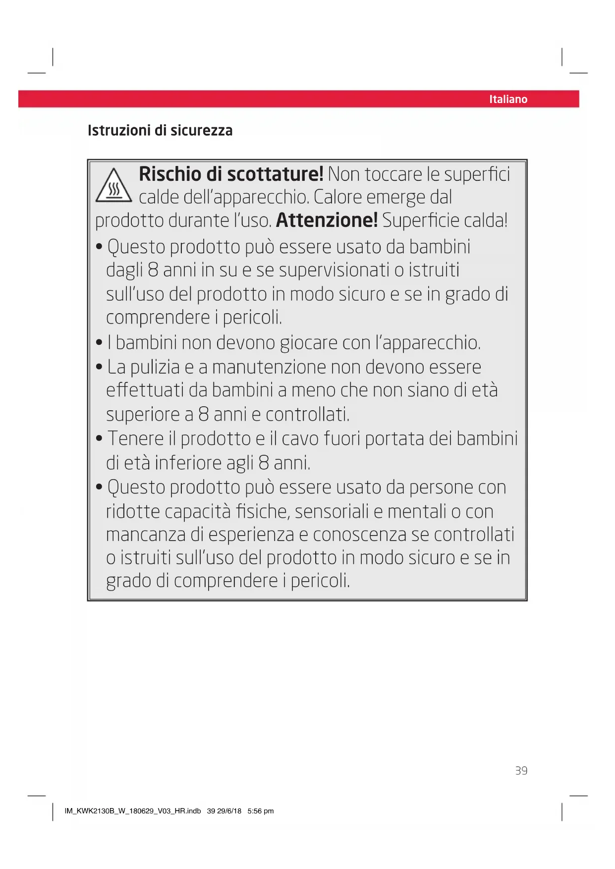 - La pulizia e a manutenzione non devono essere effettuati da bambini a meno che non siano di età superiore a 8 anni e controllati.