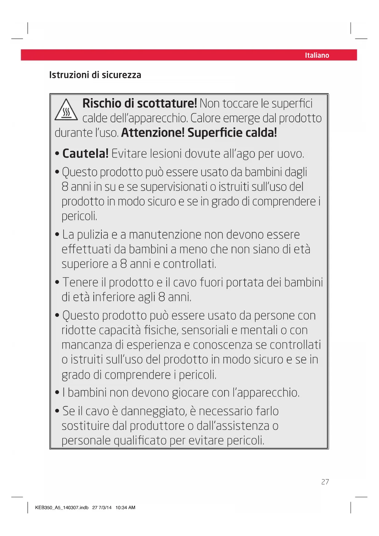 Scarica le istruzioni per il tuo Cuociuova in formato PDF gratuitamente! Trova il tuo manuale KEB 350 - Koenic e riprendi in mano il tuo dispositivo elettronico. In questa pagina sono pubblicati tutti i documenti necessari per l'utilizzo del tuo dispositivo. KEB 350 del marchio Koenic.