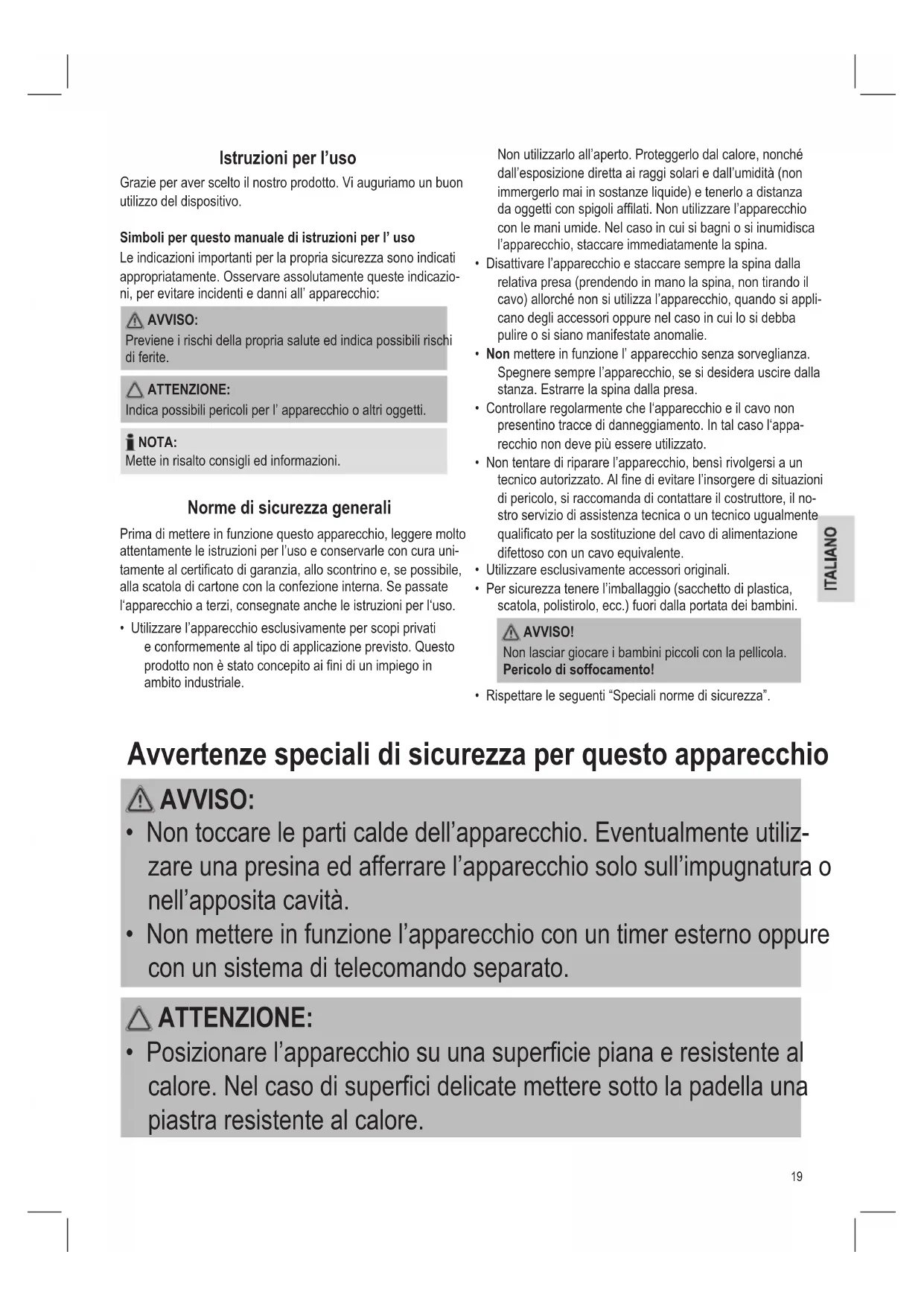 - Non toccare le parti calde dell’apparecchio. Eventualmente utiliz- zare una presina ed afferrare l’apparecchio solo sull’impugnatura o nell’apposita cavità.
