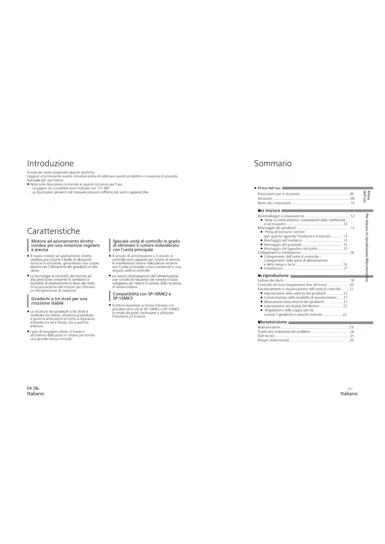 - Disegni dimensionali Sommario Caratteristiche Introduzione Grazie per avere acquistato questo prodotto. Leggere attentamente queste istruzioni prima di utilizzare questo prodotto e conservare il presente manuale per uso futuro. p. 26
