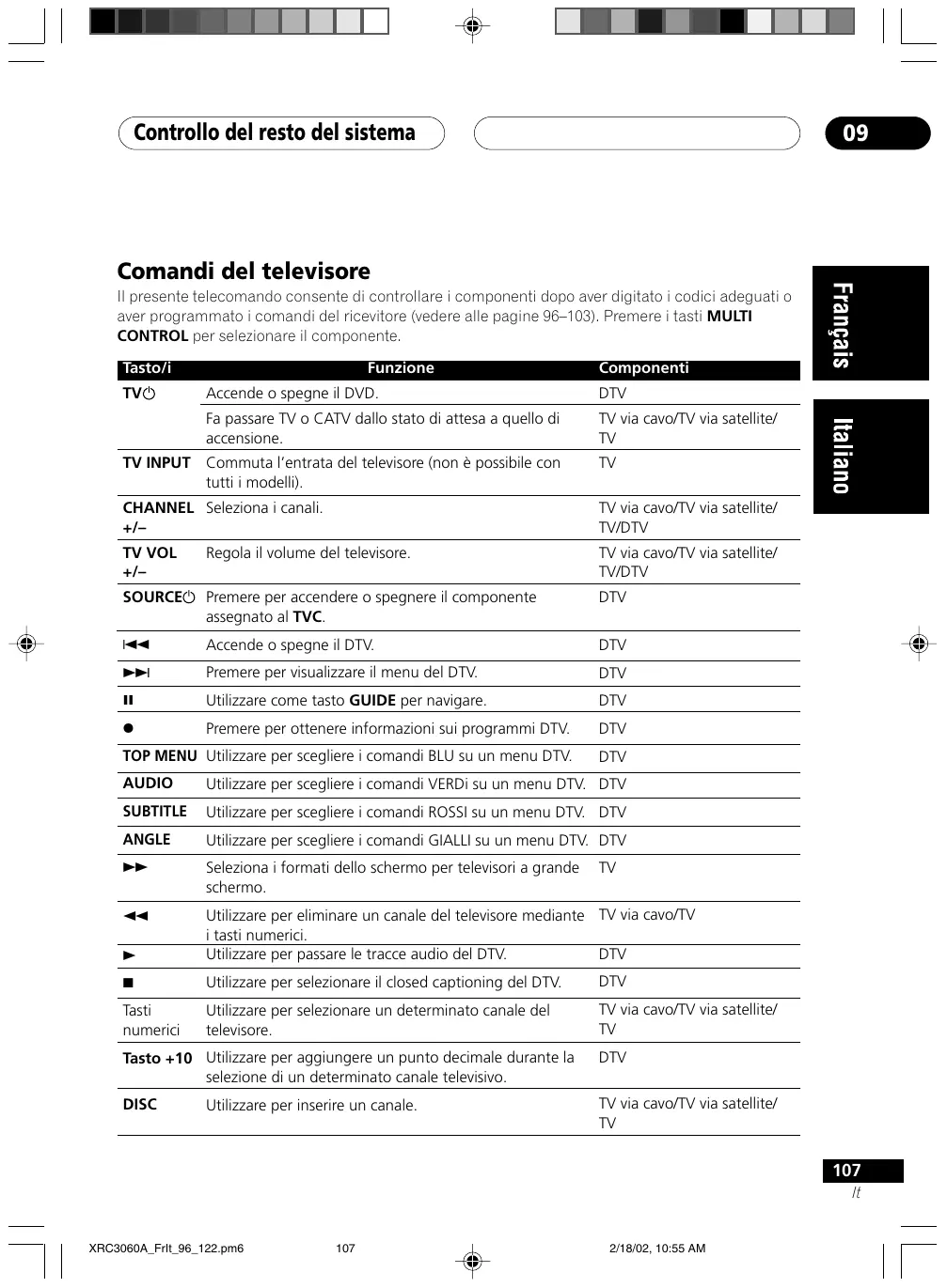 2/18/02, 10:55 AM Controllo del resto del sistema Tasto/i Funzione