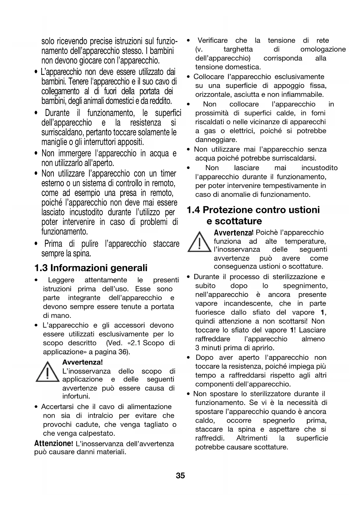 Poichè l’apparecchio funziona ad alte temperature, l’inosservanza delle seguenti avvertenze può avere come conseguenza ustioni o scottature.
