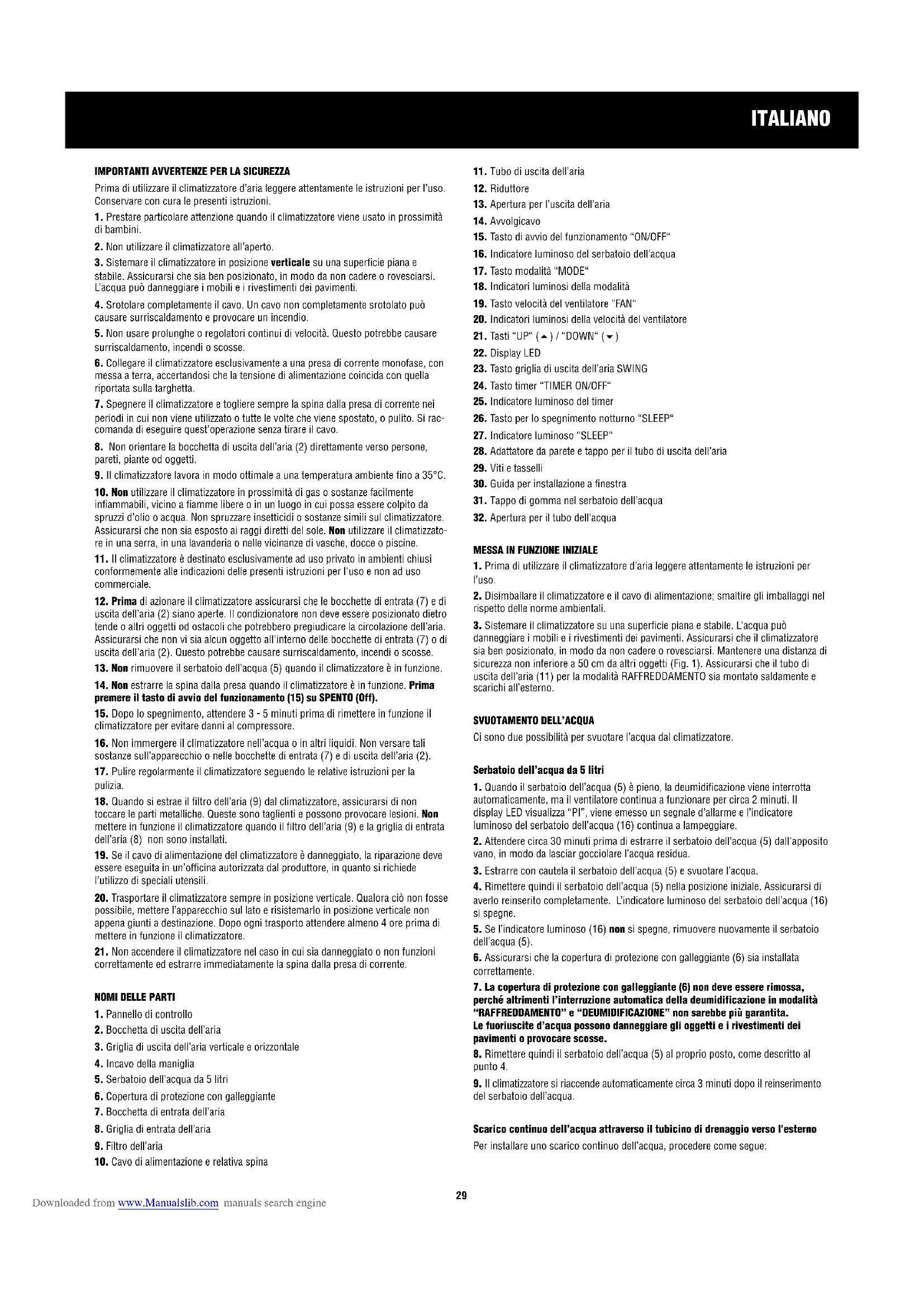 1. Prima di utilizzare il climatizzatore d’aria leggere attentamente le istruzioni per