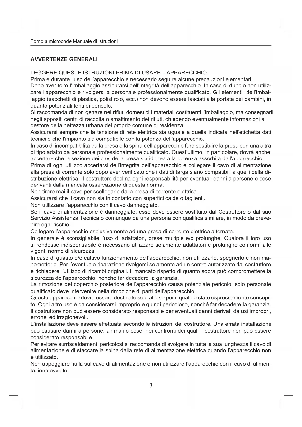 FORNO A MICROONDE - MANUALE DI ISTRUZIONI
