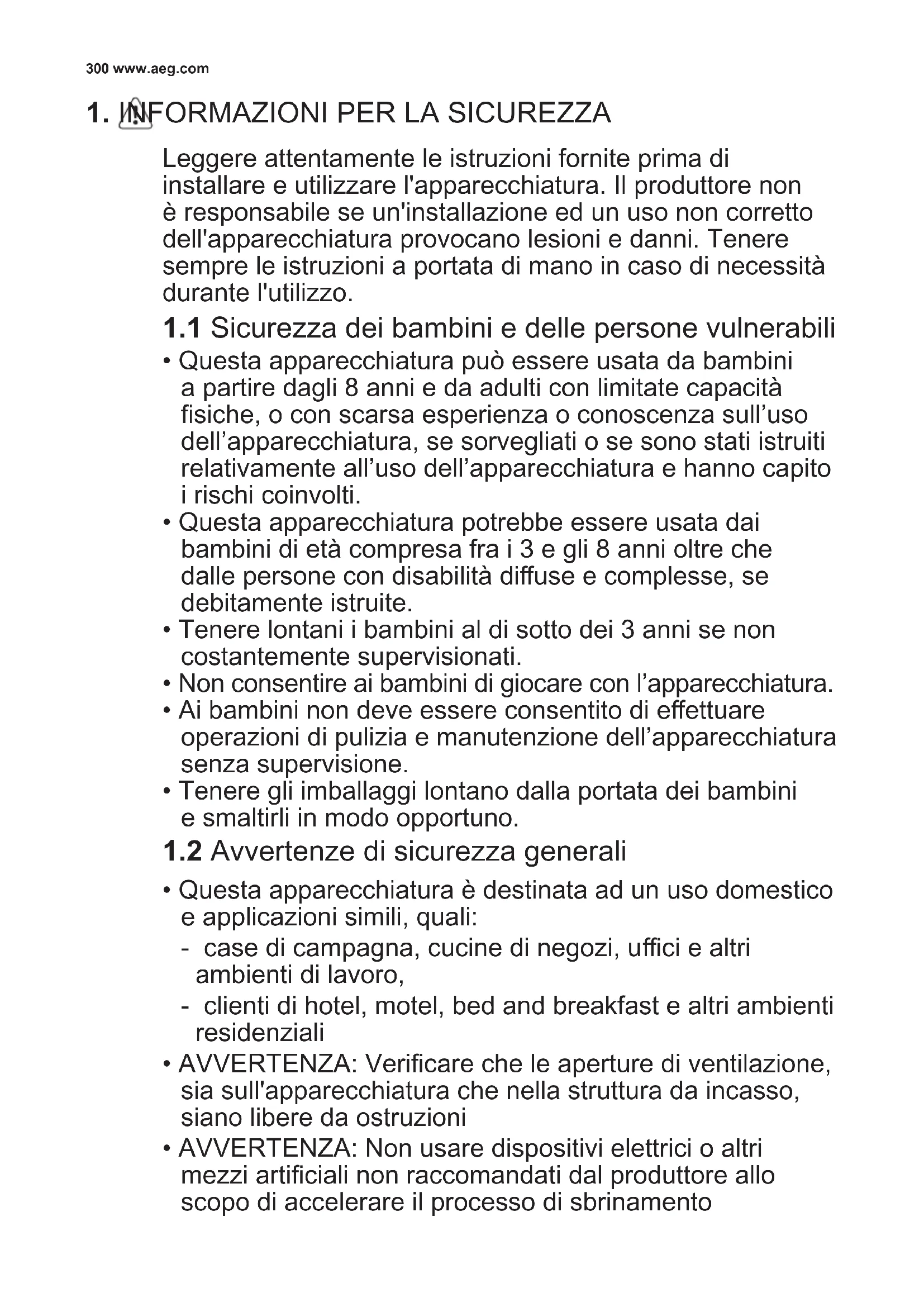 1.2 Avvertenze di sicurezza generali