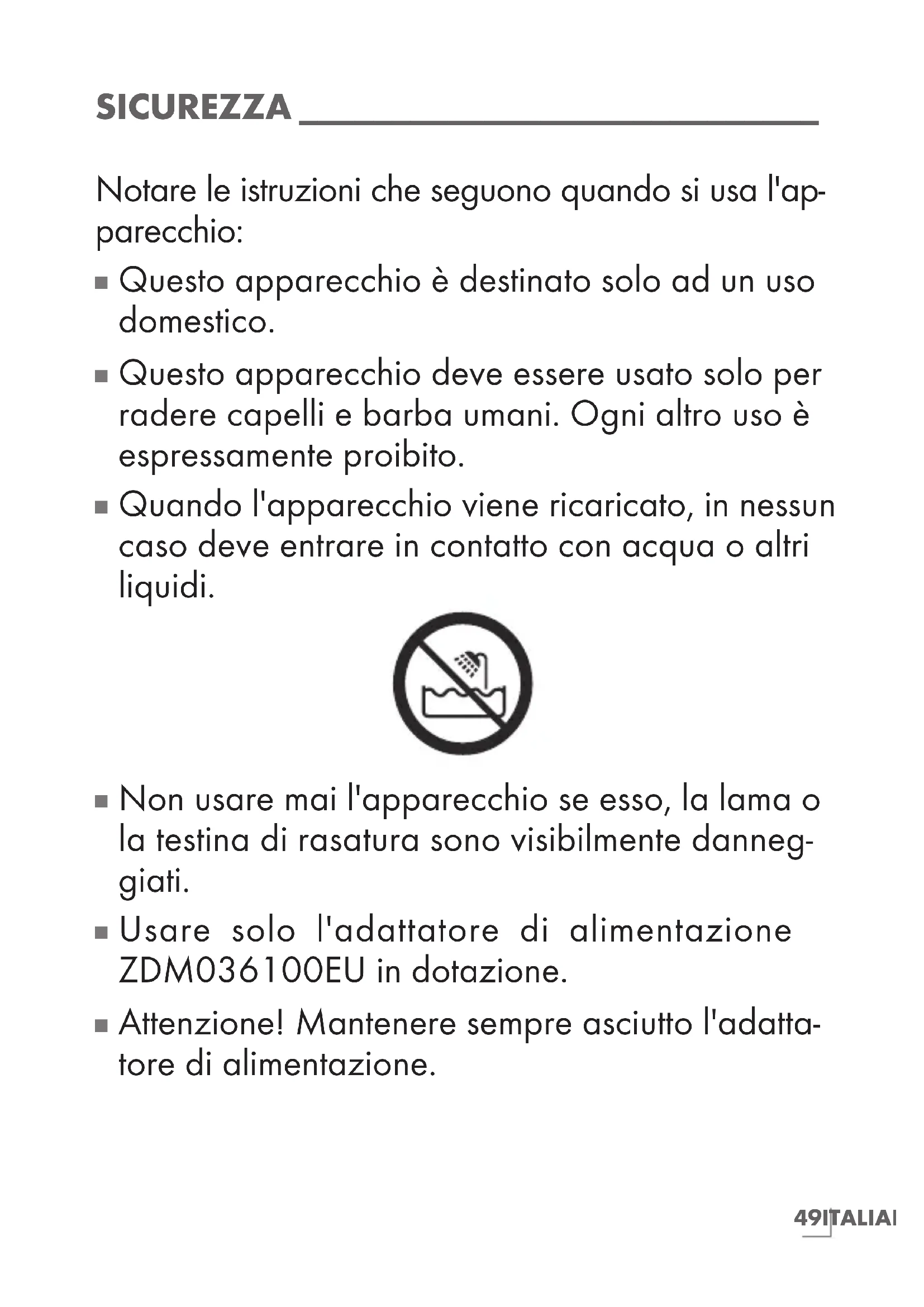 Attenzione! Mantenere sempre asciutto l'adatta- tore di alimentazione.50 ITALIANO