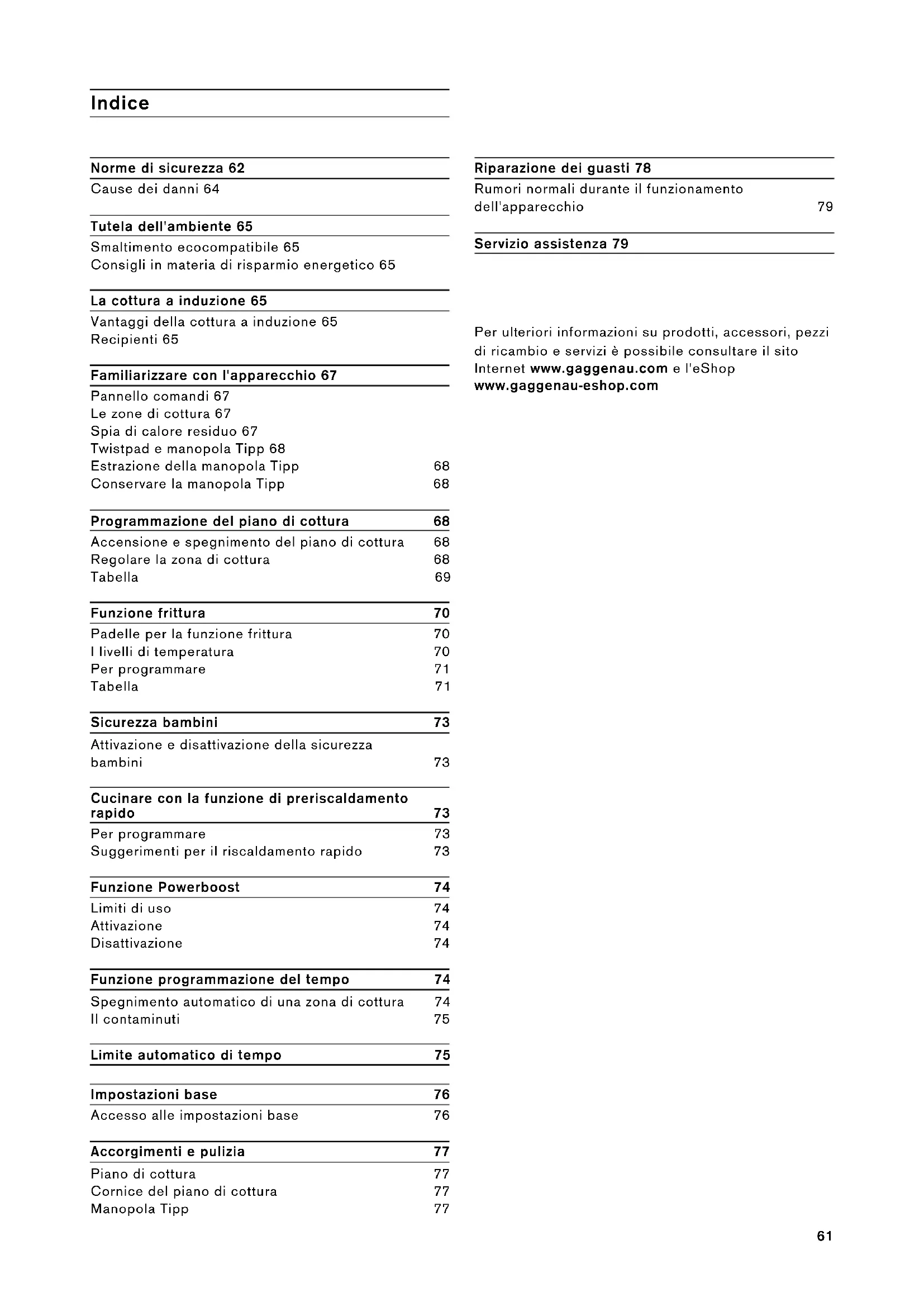Per ulteriori informazioni su prodotti, accessori, pezioni di ricambio e servizi è possibile consultare il site Internet www.gaggenau.com e l'eShop www.gaggenau-eshop.com