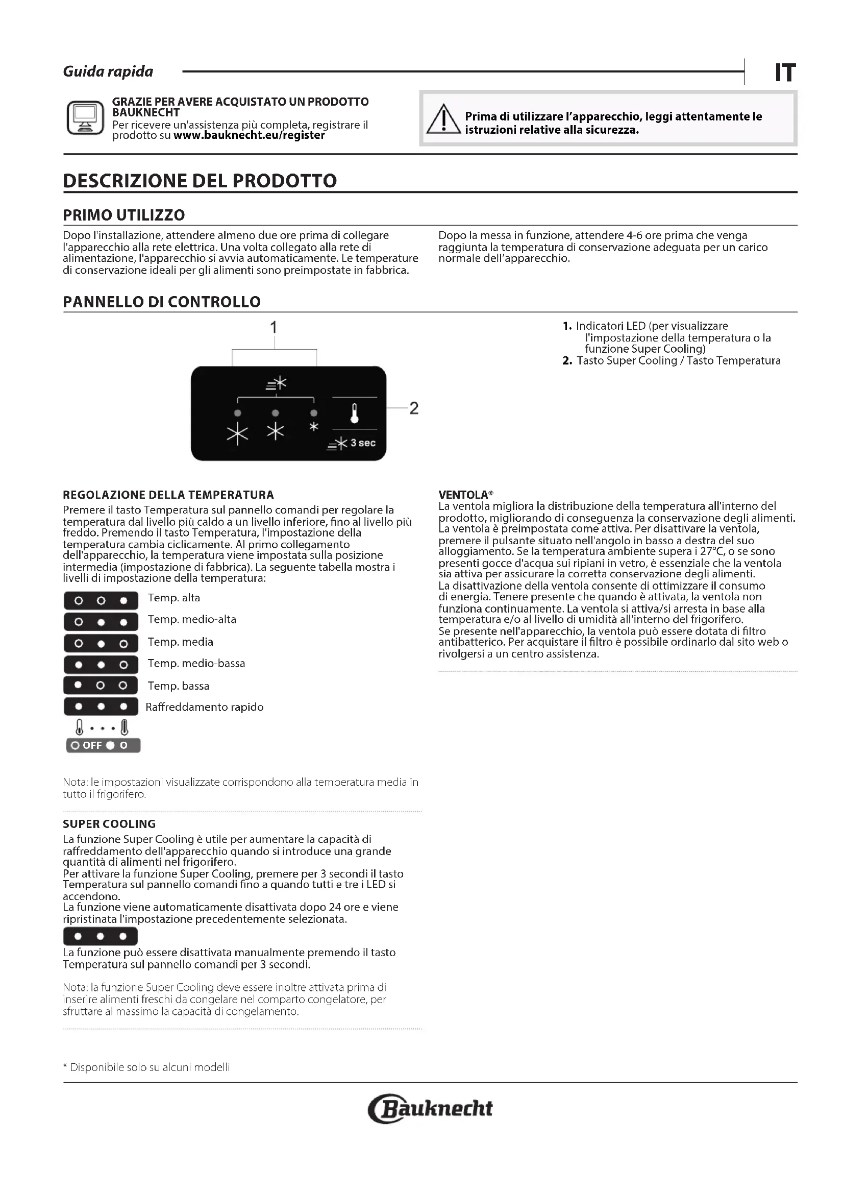 BAUKNECHT Per ricevere un'assistenza più completa, registrare il prodotto su www . bauknecht . eu / register Prima di utilizzare l’apparecchio, leggi attentamente le istruzioni relative alla sicurezza.