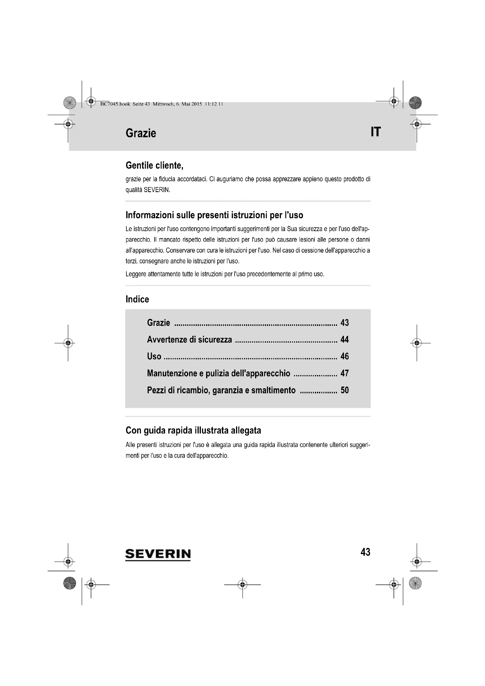 MANUALE UTENTE BC 7044 SEVERIN