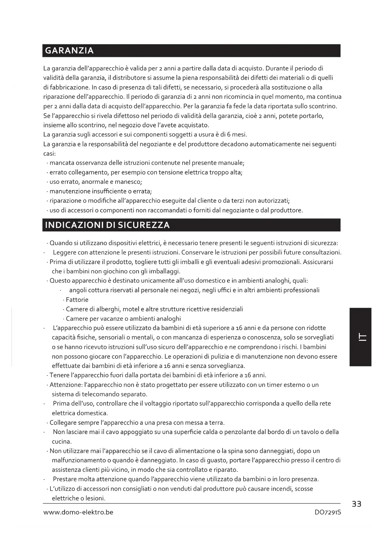 MANUALE UTENTE DO7291S DOMO