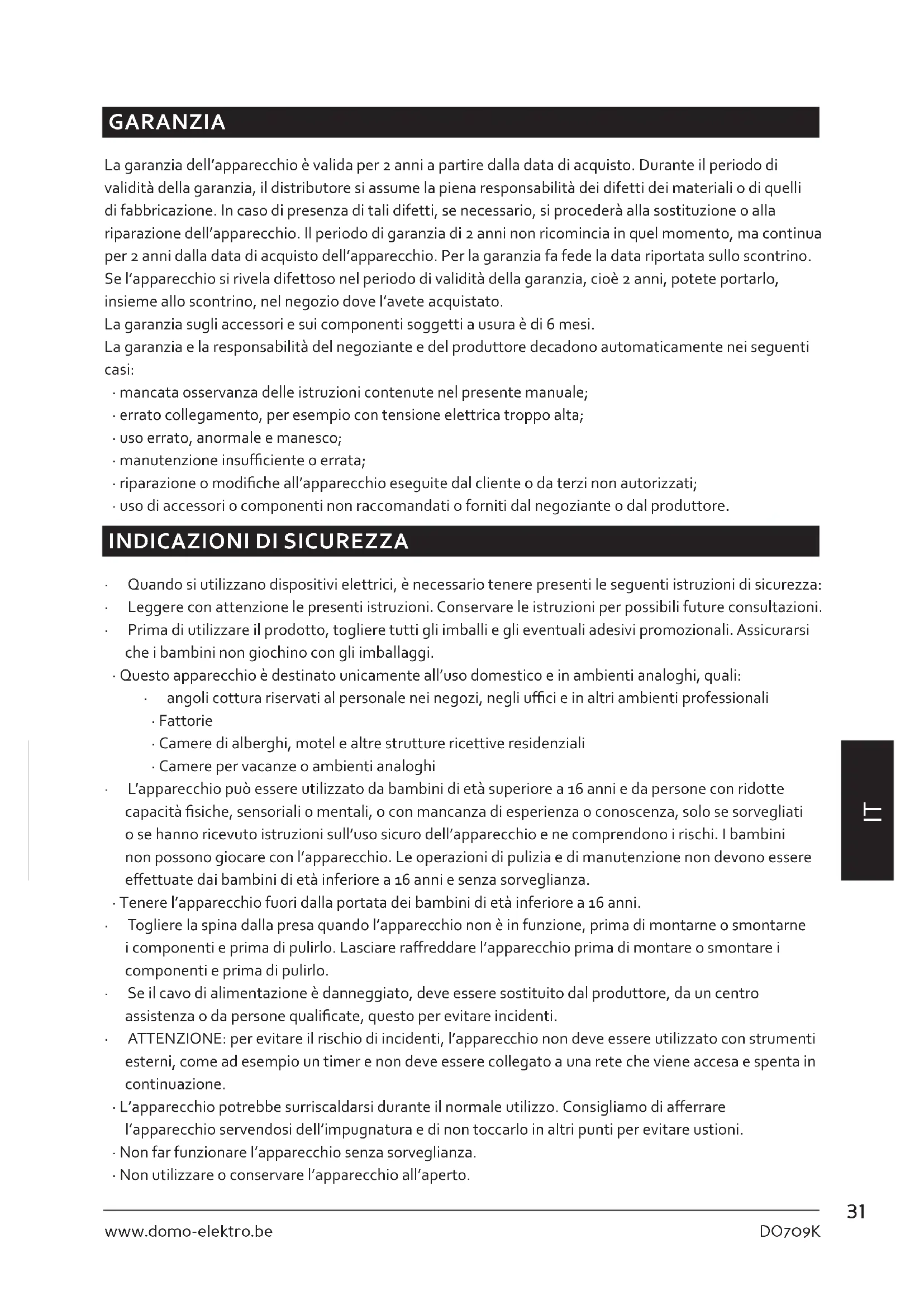 - Non lasciare mai la caraa vuota sulla piastra riscaldante. CONSERVARE LE ISTRUZIONI PER POSSIBILI FUTURE CONSULTAZIONI33 DO709K www.domo-elektro.be