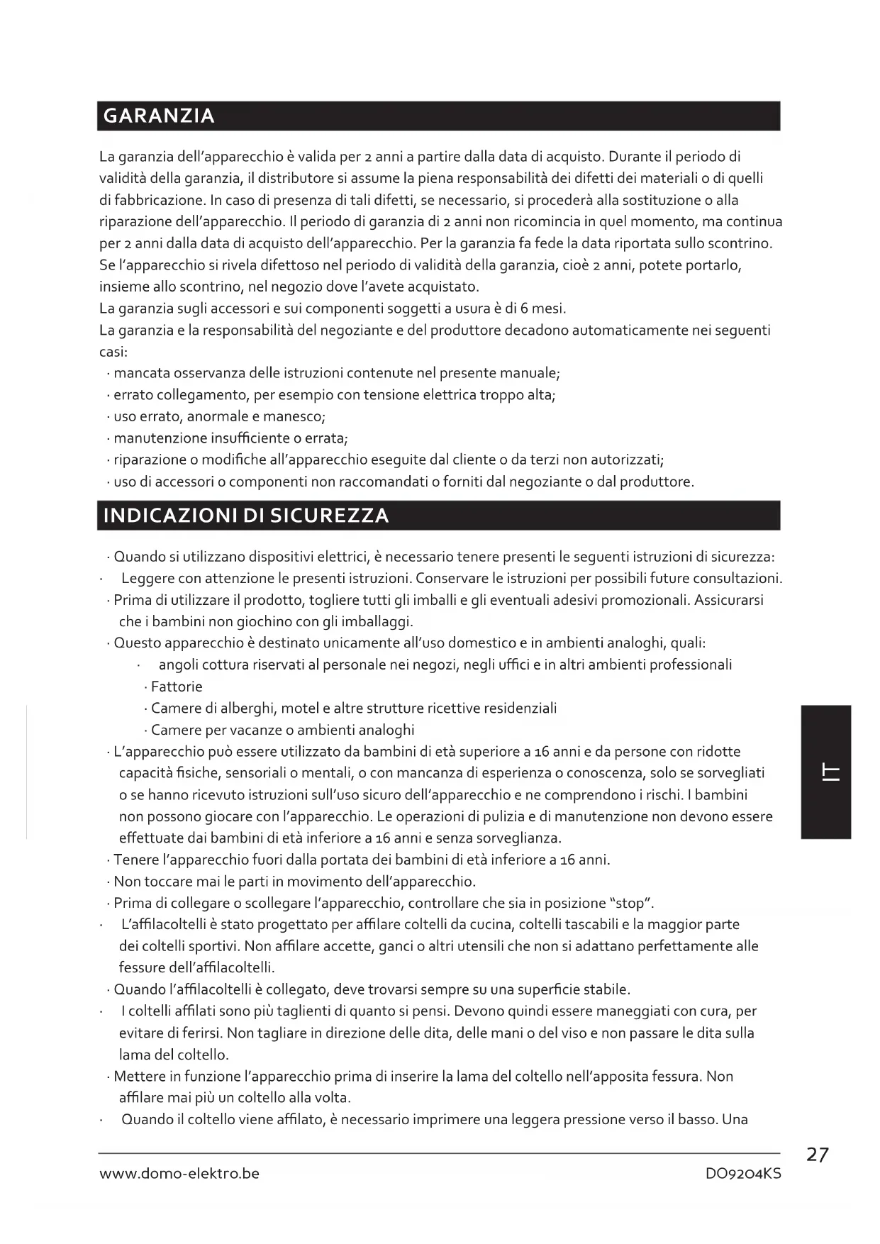 DO9204KS - Affilacoltelli DOMO - Manuale utente e istruzioni gratuiti