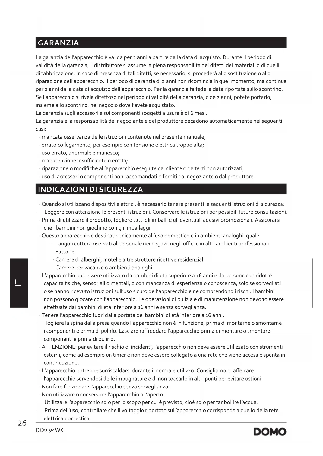 MANUALE UTENTE DO9194WK DOMO