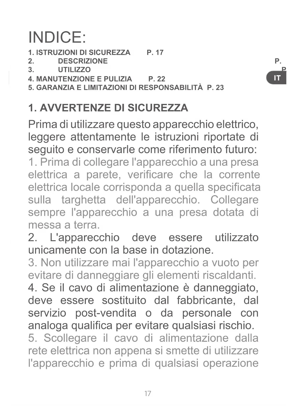 1. ISTRUZIONI DI SICUREZZA P. 17