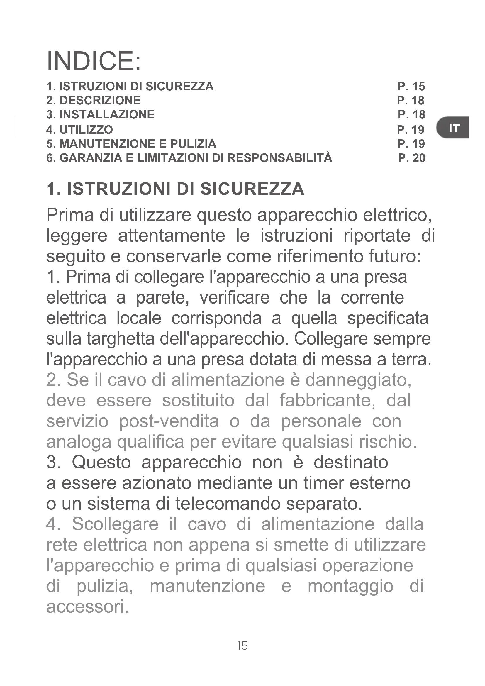 1. ISTRUZIONI DI SICUREZZA P. 15