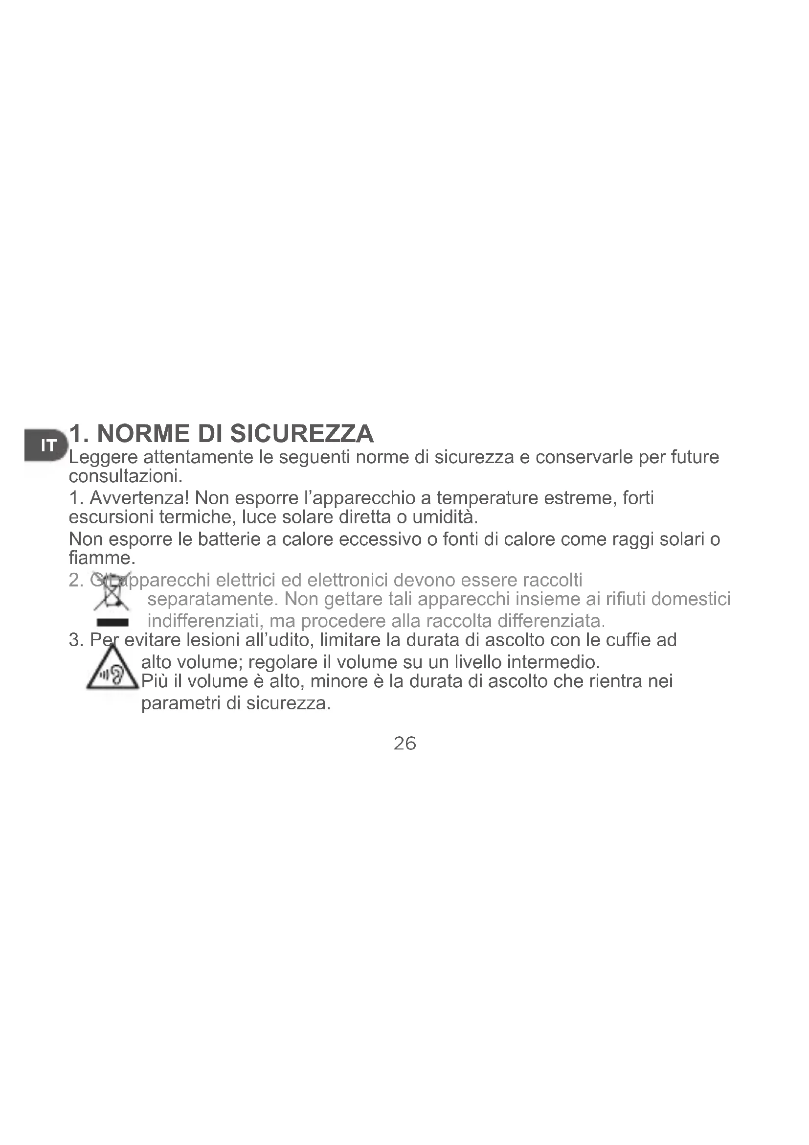 1. Avvertenza! Non esporre l’apparecchio a temperature estreme, forti