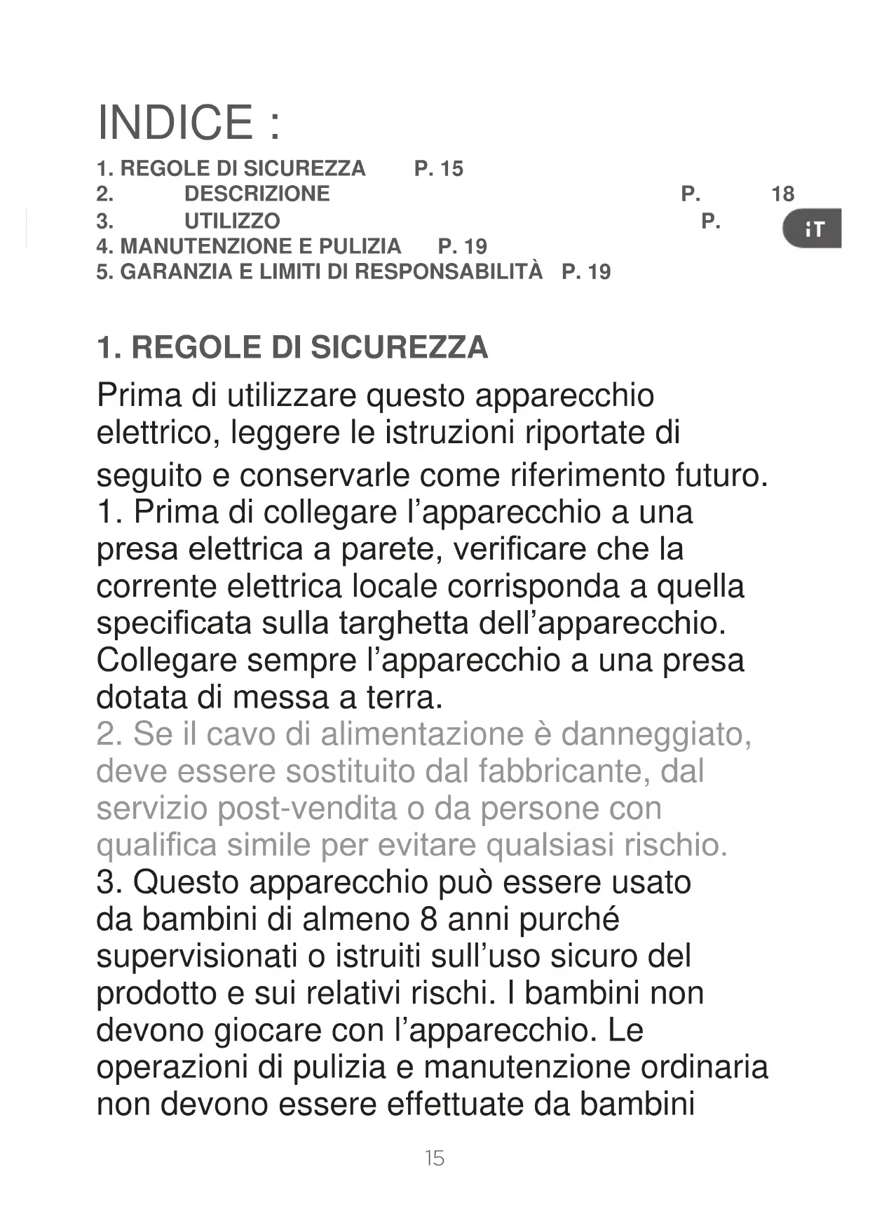 1. REGOLE DI SICUREZZA P. 15