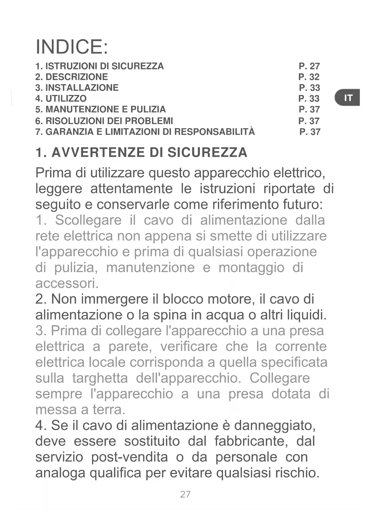 1. ISTRUZIONI DI SICUREZZA P. 27