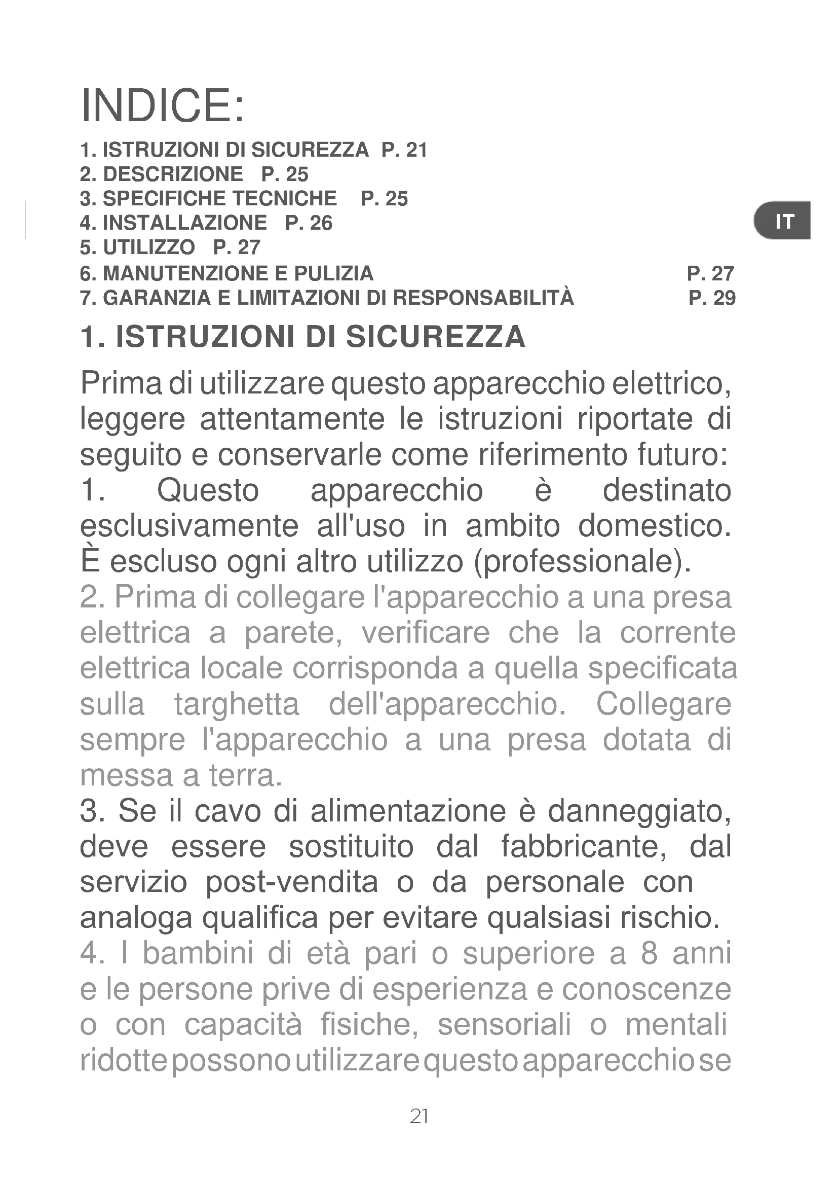 1. ISTRUZIONI DI SICUREZZA P. 21