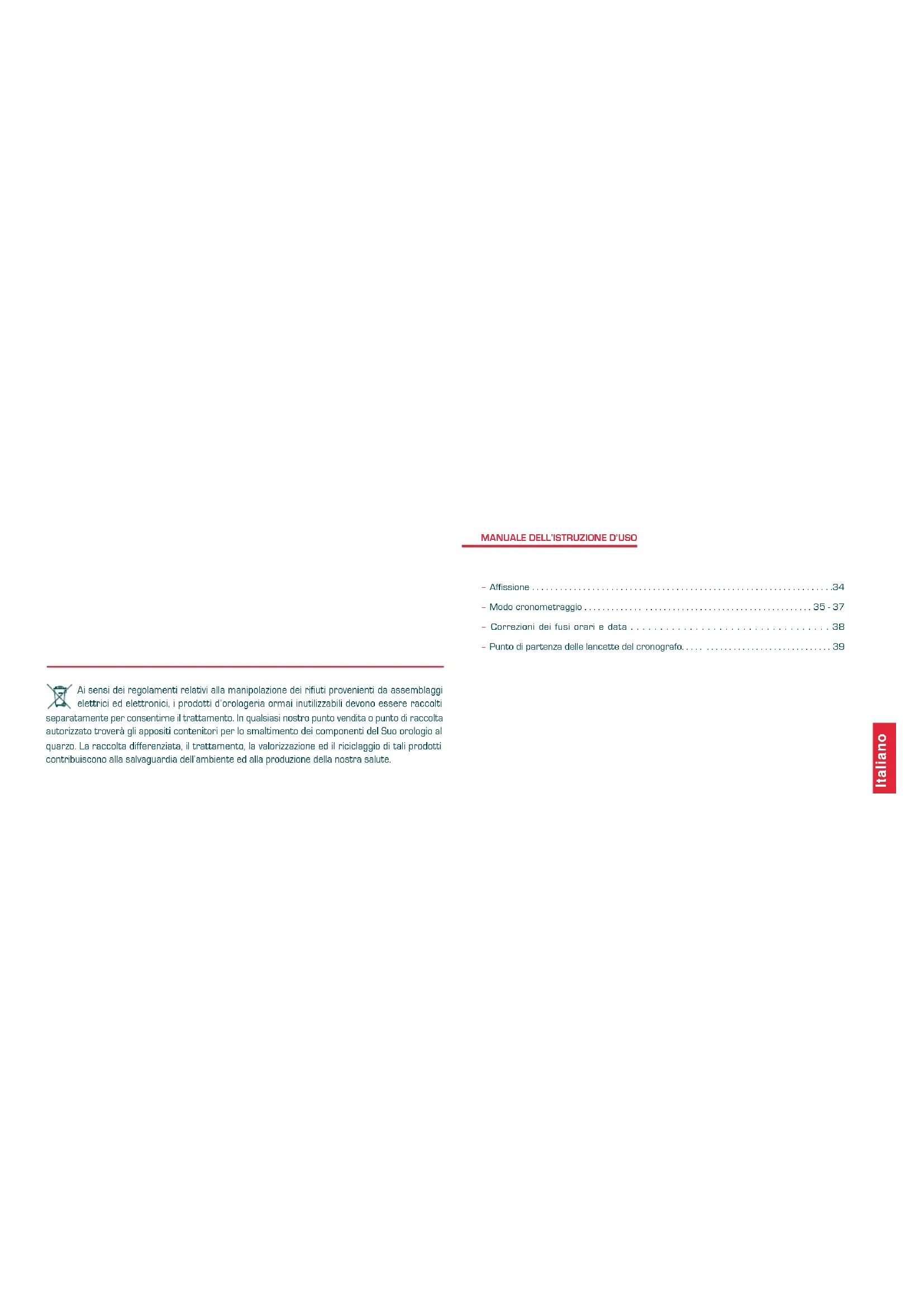 ATTENZIONE: Prima di ogni cronometraggio, le lancette devono essere poste all'origine. Se necessario, effettuare una rimessa a zero a mezzo del pulsante B.