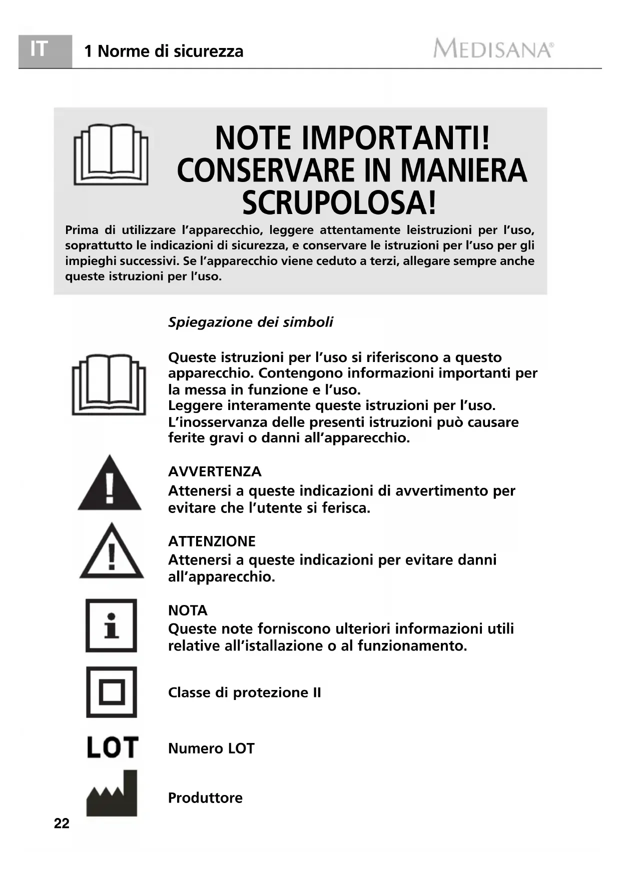 2 Modalità d’impiego Grazie per la fiducia accordataci e complimenti per la scelta! Con il Scaldaletto doppio HU 660 avete acquistato un prodotto di qualitá di MEDISANA. Per raggiungere i risultati auspicati e per utilizzare al meglio il scaldaletto doppio HU 660 raccomandiamo di leggere attentamente le seguenti indicazioniper lʼuso e la manuten- zione.