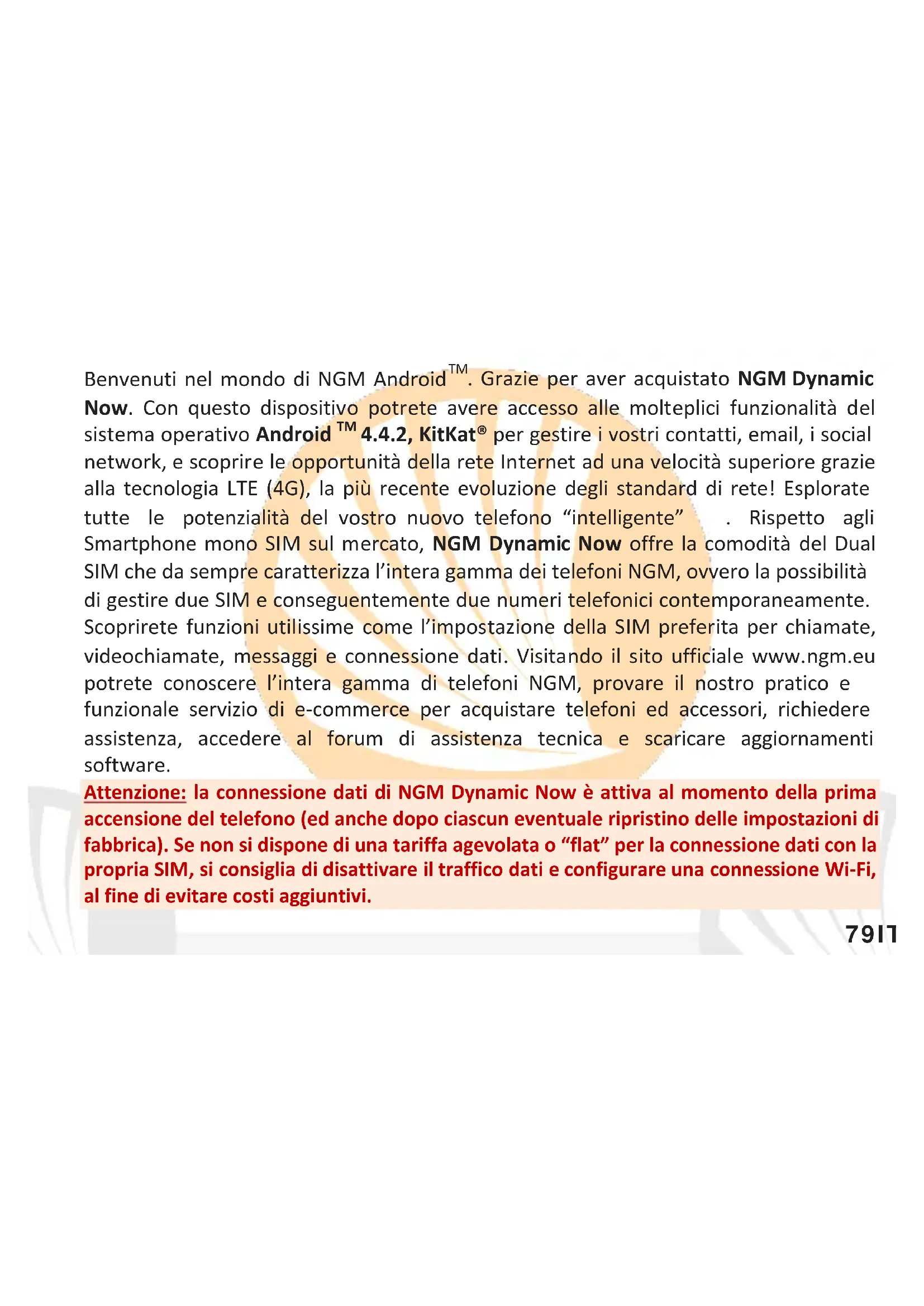 . Grazie per aver acquistato NGM Dynamic Now. Con questo dispositivo potrete avere accesso alle molteplici funzionalità del sistema operativo Android