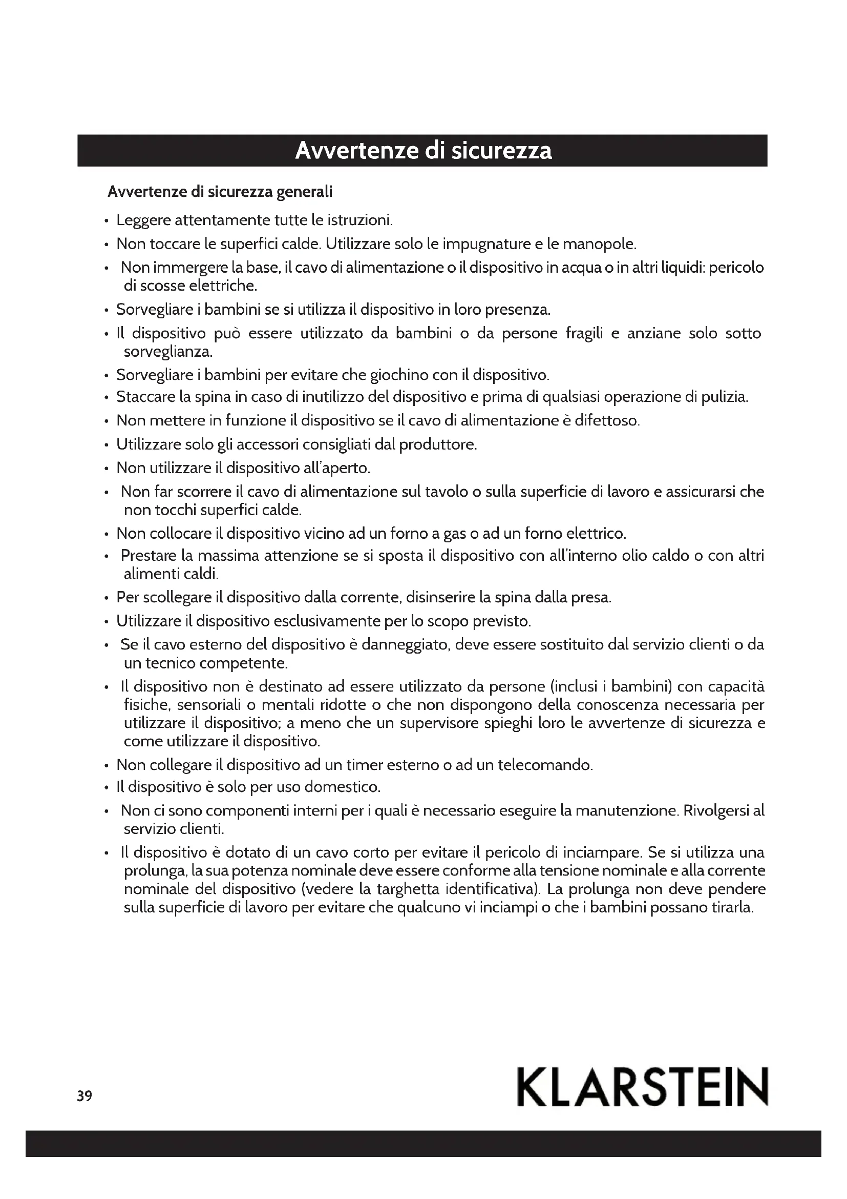 - Il dispositivo può essere utilizzato da bambini o da persone fragili e anziane solo sotto sorveglianza.