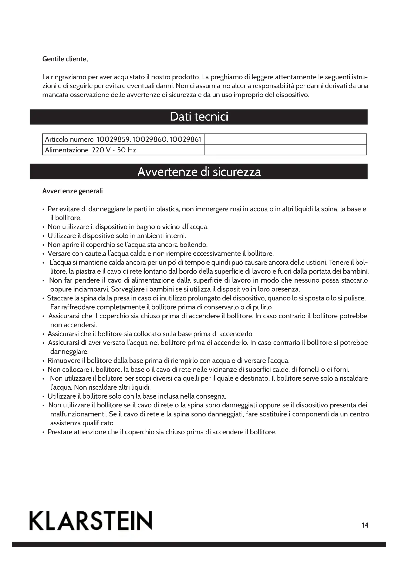 10029861 - Bollitore Klarstein - Manuale utente e istruzioni gratuiti