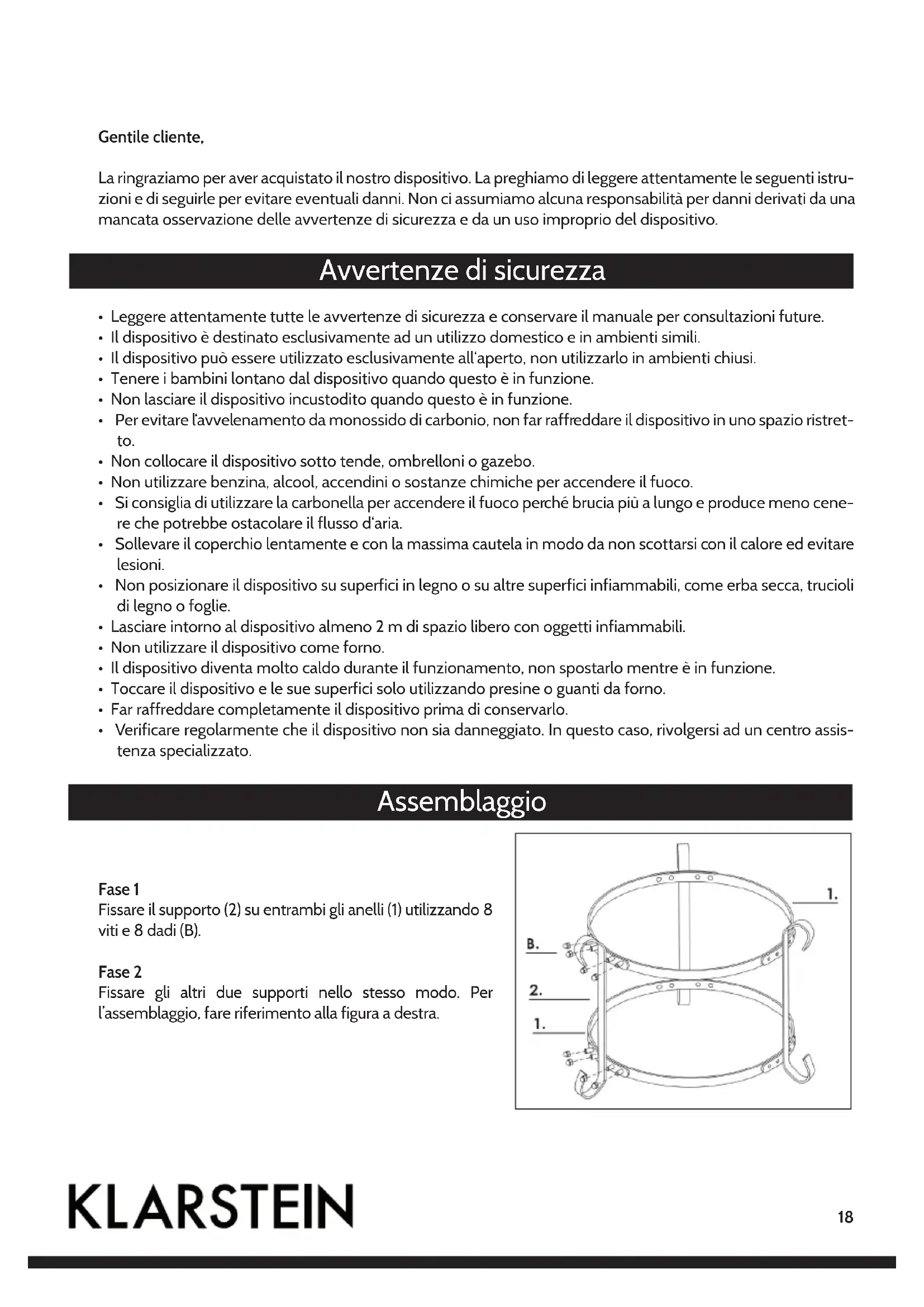 Scarica le istruzioni per il tuo Barbecue in formato PDF gratuitamente! Trova il tuo manuale 10029124 - Klarstein e riprendi in mano il tuo dispositivo elettronico. In questa pagina sono pubblicati tutti i documenti necessari per l'utilizzo del tuo dispositivo. 10029124 del marchio Klarstein.