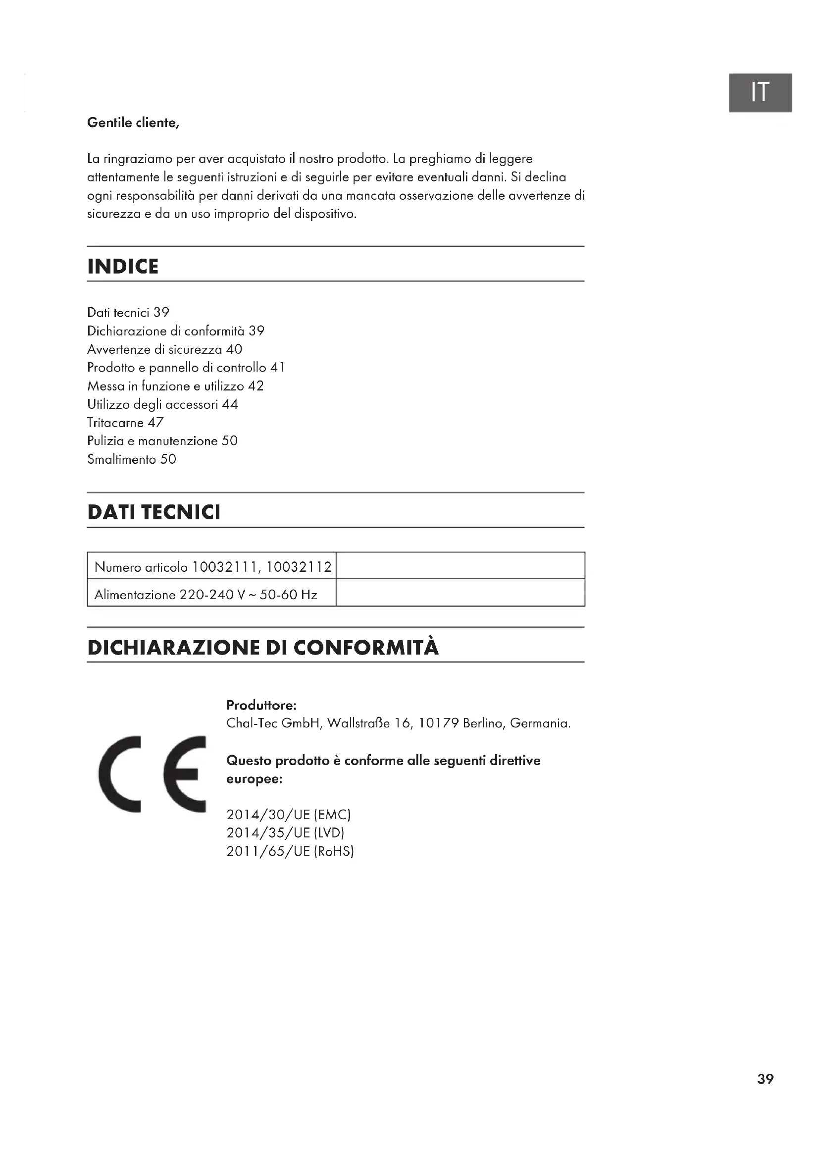 Dati tecnici 39