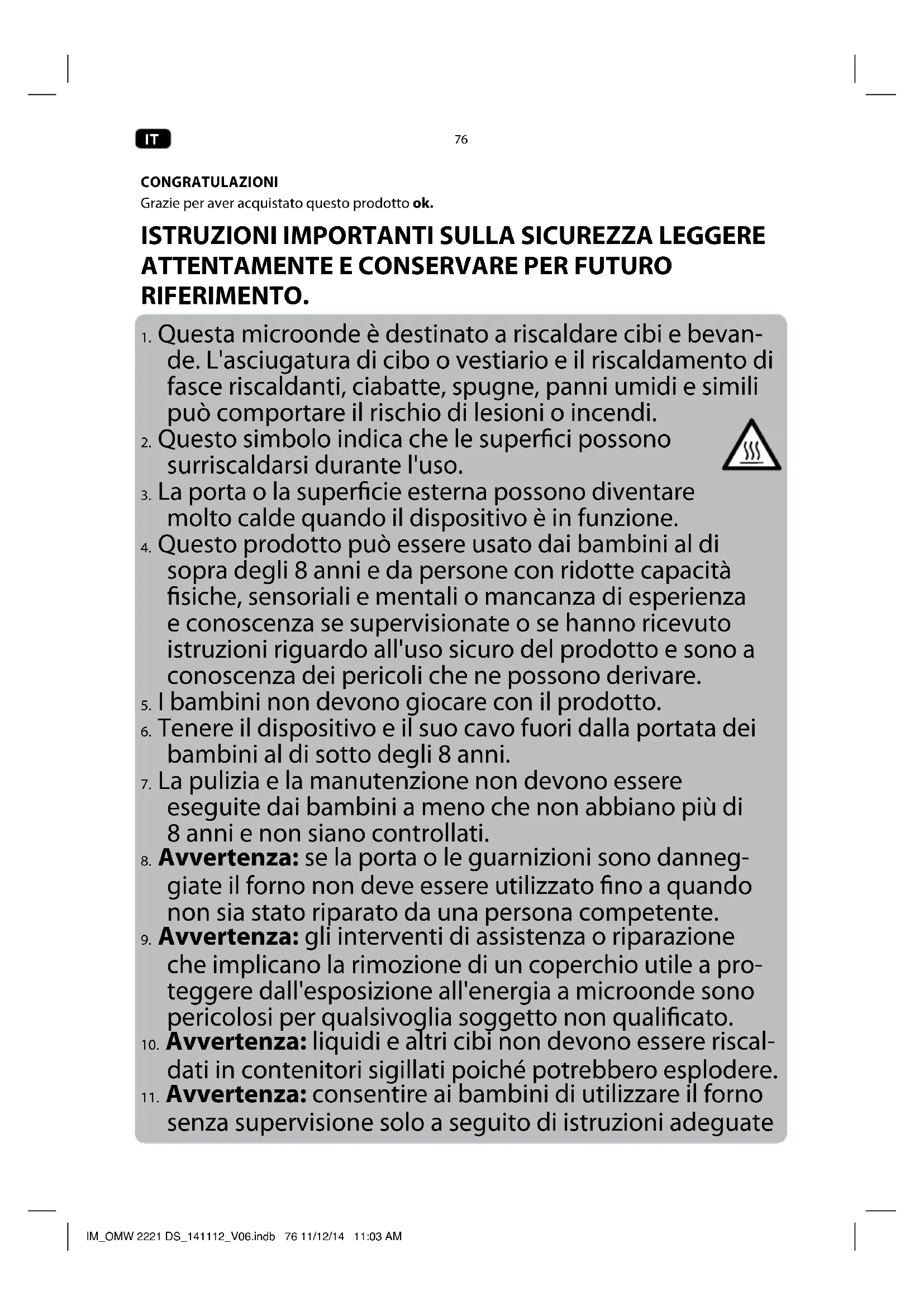 OMW 2221 DS - Microonde OK - Manuale utente e istruzioni gratuiti
