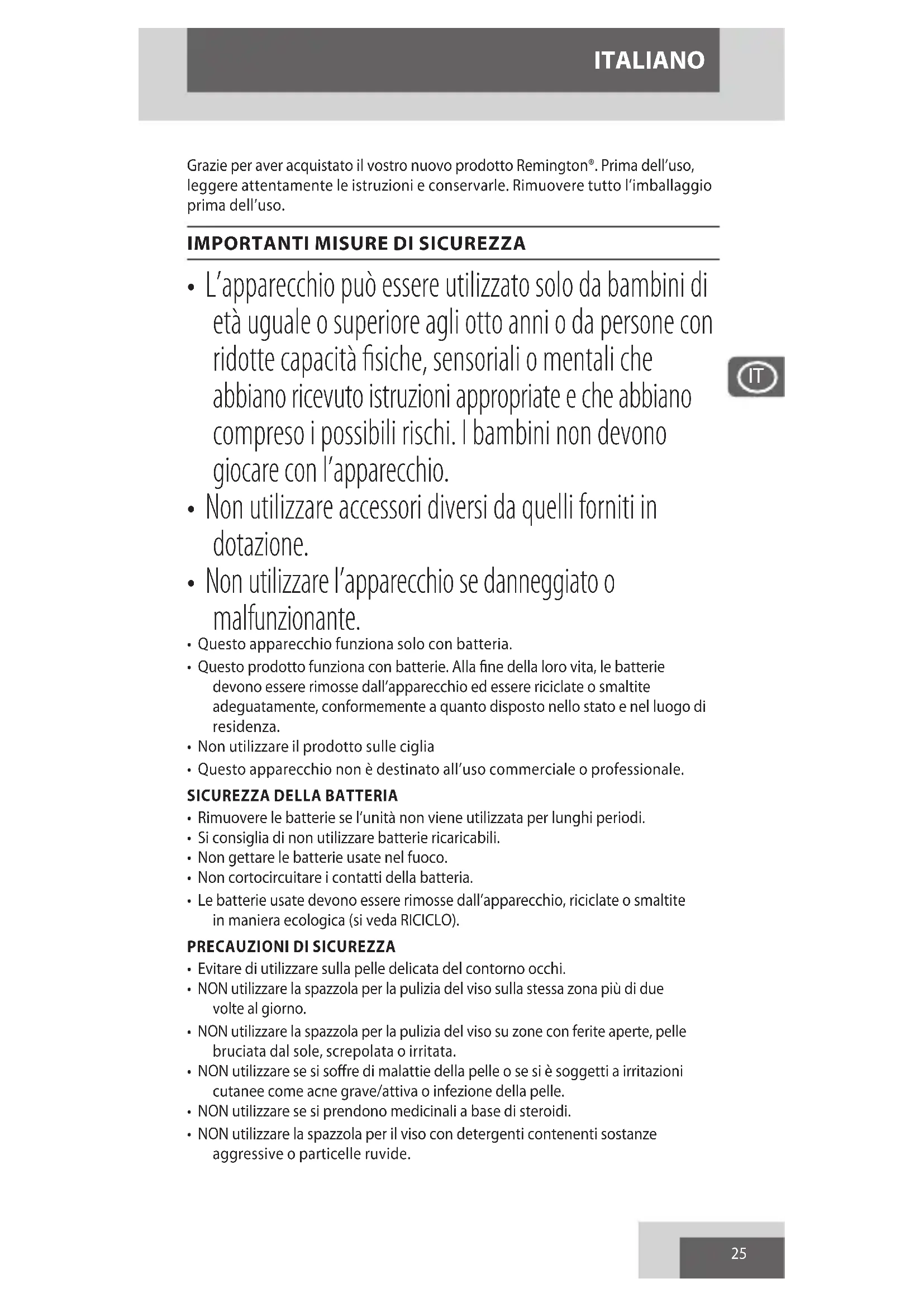 approssimativamente ogni 3 mesi. Contattare il vostro centro di assistenza Remington più vicino per avere maggiori informazioni.