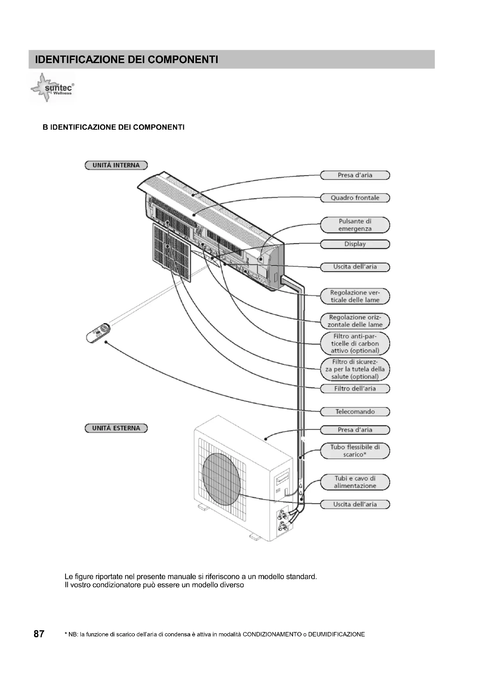 Le figure riportate nel presente manuale si riferiscono a un modello standard. Il vostro condizionatore può essere un modello diverso