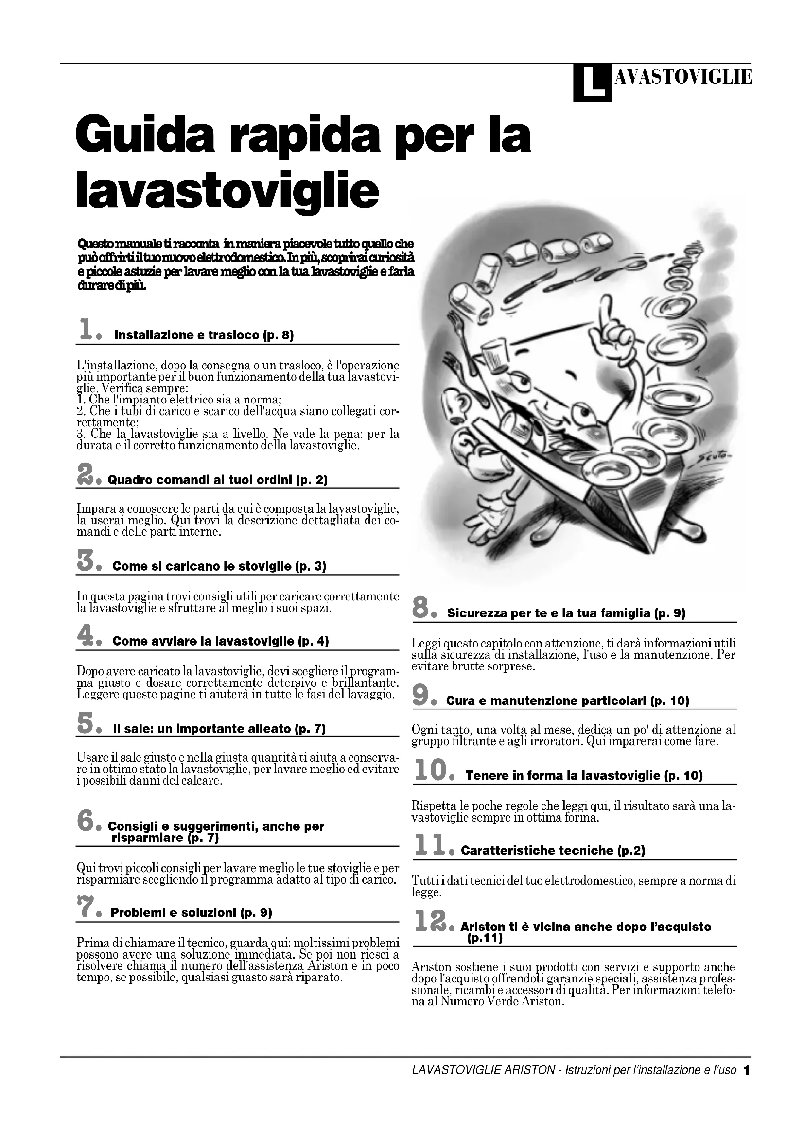 (p.11)Ariston sostiene i suoi prodotti con servizi e supporto anchedopo l'acquisto offrendoti garanzie speciali, assistenza profes-sionale, ricambi e accessori di qualità. Per informazioni telefo-na al Numero Verde Ariston.L AVASTOVIGLIE