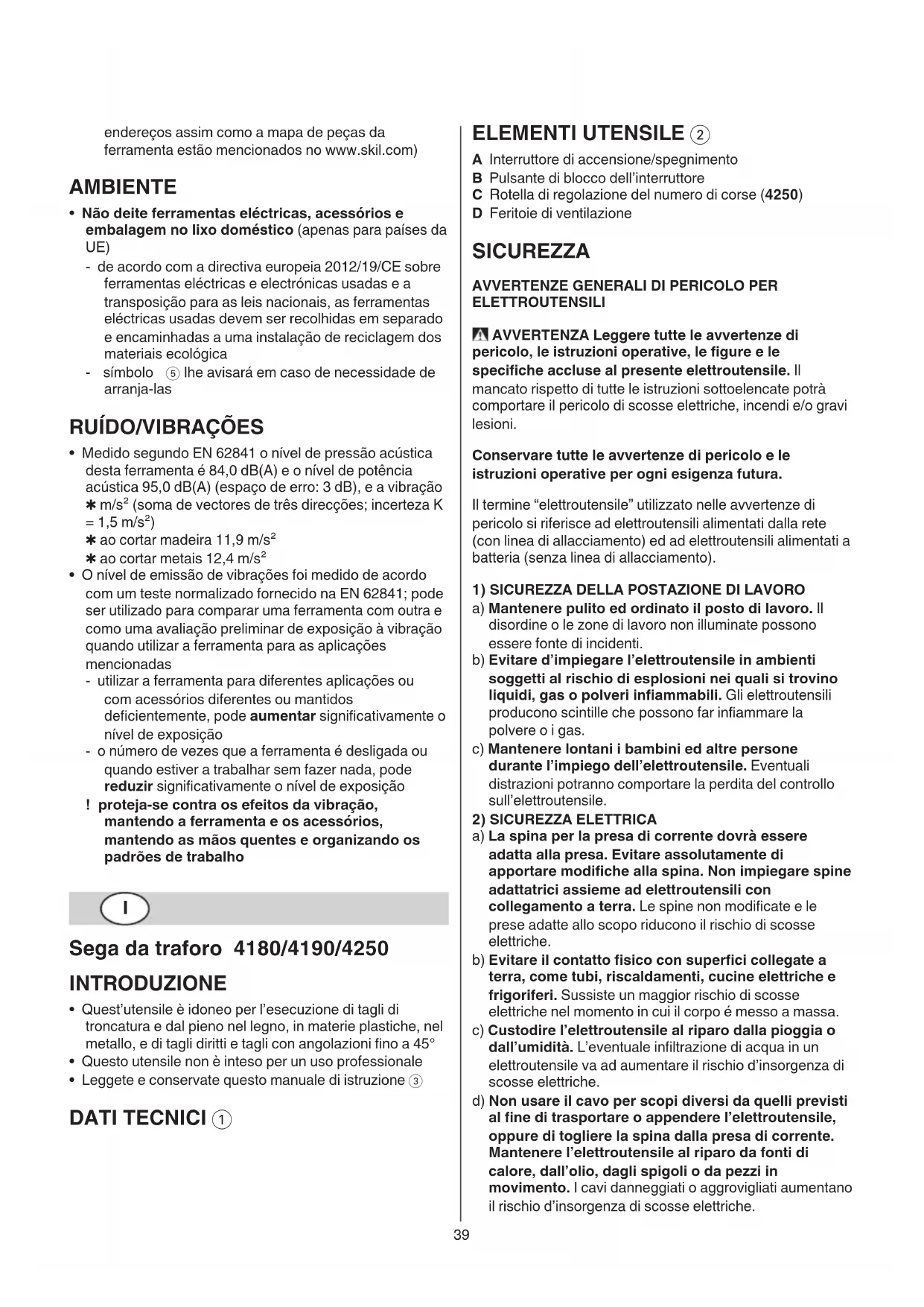 Scarica le istruzioni per il tuo Sega in formato PDF gratuitamente! Trova il tuo manuale 4190 AA - SKIL e riprendi in mano il tuo dispositivo elettronico. In questa pagina sono pubblicati tutti i documenti necessari per l'utilizzo del tuo dispositivo. 4190 AA del marchio SKIL.