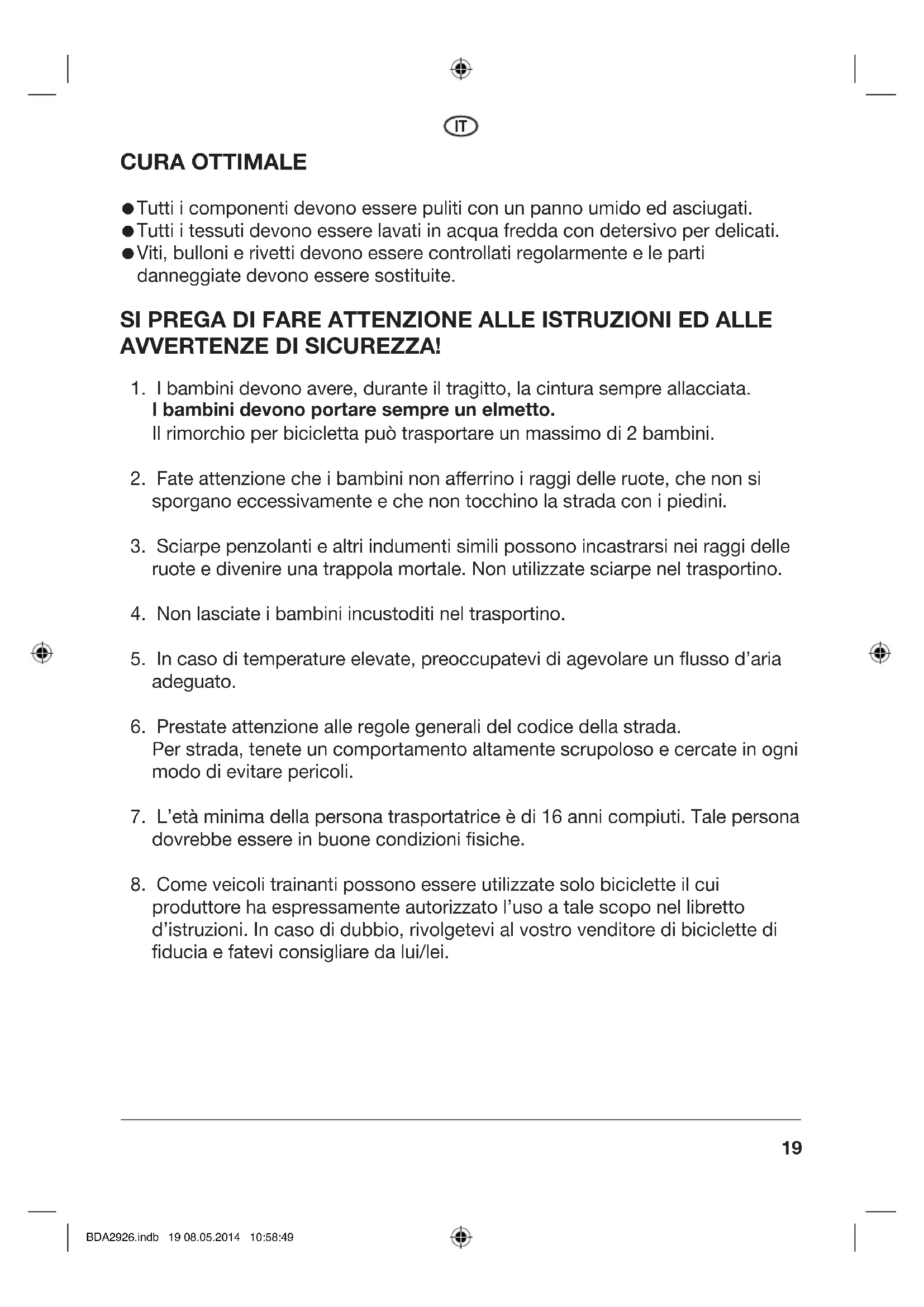 produttore ha espressamente autorizzato l’uso a tale scopo nel libretto d’istruzioni. In caso di dubbio, rivolgetevi al vostro venditore di biciclette di fiducia e fatevi consigliare da lui/lei. BDA2926.indb 19 08.05.2014 10:58:4920