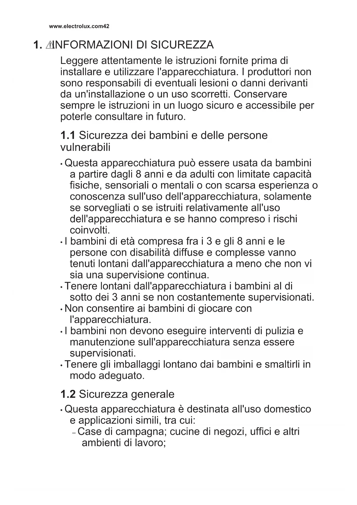 - Questa apparecchiatura è destinata all'uso domestico e applicazioni simili, tra cui: – Case di campagna; cucine di negozi, uffici e altri ambienti di lavoro; www.electrolux.com42– Clienti di hotel, motel, bed and breakfast e altri ambienti residenziali.