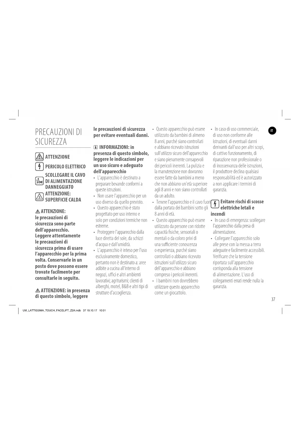 UM_LATTISSIMA_TOUCH_FACELIFT_Z2A.indb 37 19.10.17 10:01IT L’apparecchio deve essere collegato solo dopo l’installazione
